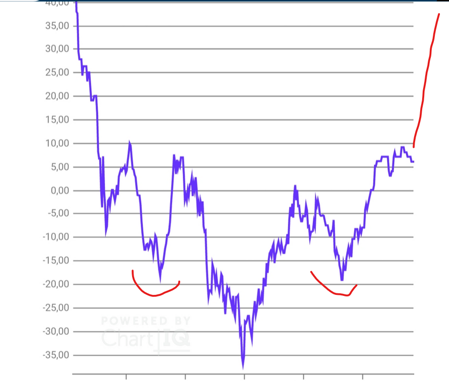 Sollte die Aktie sich jetzt noch ein wenig erholen und über 6,135 EUR steigen, winkt ein Anstieg auf etwa etwa 7,2 bis 7,44 EUR (horizontaler Widerstand). Passenderweise bewegt sich dort auch gerade der EMA50 hin.