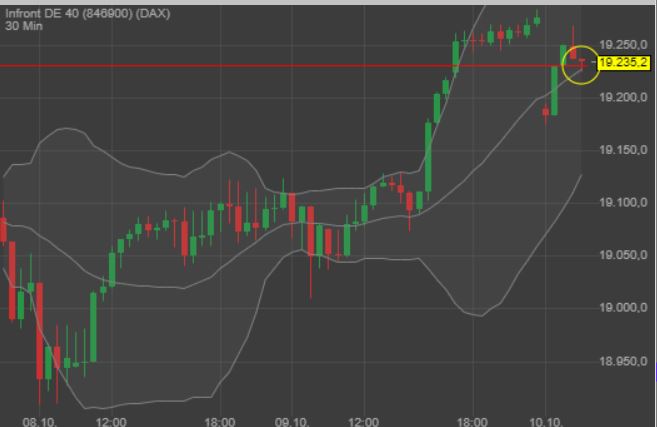 Nachdem es an den letzten Handelstagen mehrfach zu Belastungsproben der Kernhaltezone bei rund 19.000 Punkten kam und der DAX® diese Bastion vorgestern nochmals mit einem „intraday reversal“ bestätigt hatte, konnten die gestrigen Kursavancen nicht gänzlich überraschend. Da das Tief vom 8. Oktober (18.912 Punkte) von zwei höherliegenden Tiefs „umschlossen“ wird, erfährt das diskutierte „reversal“ eine weitere Bestätigung Schließlich entsteht dadurch ein sog. „swing low“. Dieses besondere Phänomen markierte in der Vergangenheit oftmals kurzfristige Marktwendepunkte. Gleichzeitig haben die deutschen Standardwerte gestern die jüngsten beiden Hochs bei 19.152/19.172 Punkten übersprungen – unser Signalgeber für einen Anlauf auf das bisherige Allzeithoch bei 19.492 Punkten! Zusätzlicher Rückenwind kommt aus den USA, wo der S&P 500® mit 5.797 Punkten gestern wieder einmal ein neues Allzeithoch erreicht hat. Den einzigen Wermutstropfen stellt derzeit die Börsenstimmung dar, denn die jüngste Sentimentumfrage der American Association of Individual Investors (AAII) signalisiert bei 49 % Bullen und lediglich 20,6 % Bären derzeit einen recht hohen Grad an Optimismus."