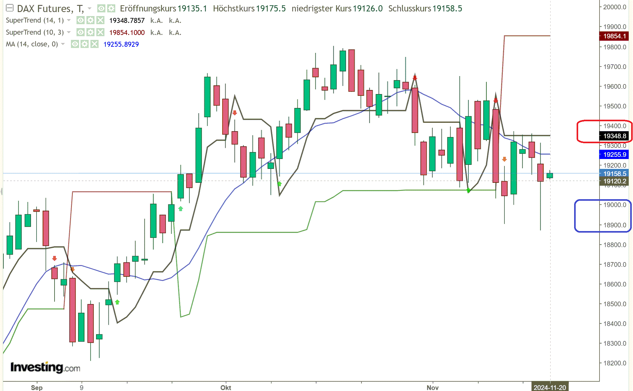 DAXiene.....Trend down....kleines Shortsignal aktiviert...SignalN vor Wechsel gen Short....Bruchhandel war erfolgreich....jetzt haben wir einen Doppelboden um 18.860....150/230 begrenzt das Potential nach oben....860 die Unterstützung unten, was aber in einem Abwärtstrend leichter gebrochen wird....770 darunter die nächste Stütze, bevor im Bereich 18.400/500 schwere Geschütze aufgefahren werden
