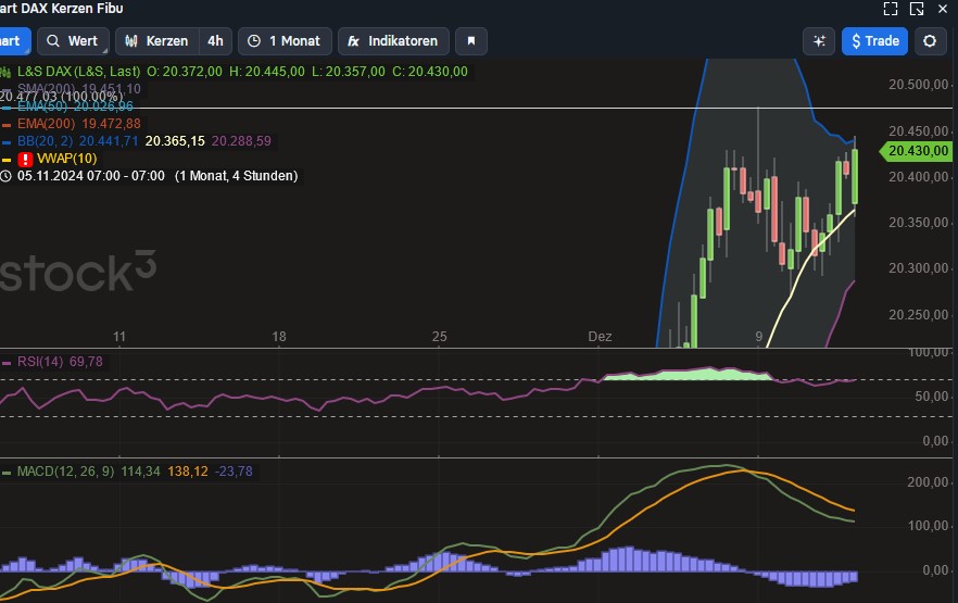 Der DAX neigte gestern lediglich zur Eröffnung zur Schwäche. Ausgehend vom in der ersten Stunde markierten Tief bei 20.293 Punkten arbeitete er sich bis auf ein kurz vor Handelsschluss verzeichnetes 2-Tages-Hoch bei 20.415 Punkten hinauf.