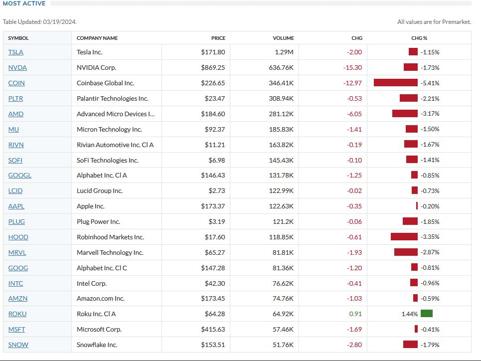 Der Dow Jones befindet sich seit ihrem Allzeithoch bei 39.282 Punkten vom 23. Februar in einer Konsolidierung. Am 13. März näherte sich der Index diesem Hoch noch einmal an, drehte aber wieder nach unten. Diese Verkaufswelle führte den Index bisher auf 38.618 Punkten. Gestern gab es in der Eröffnung einen Sprung, mit dem der Index wieder über 38.730 Punkte anzog. Anschließend lief der Index seitwärts. Vorbörslich notiert der Index leicht im Minus.