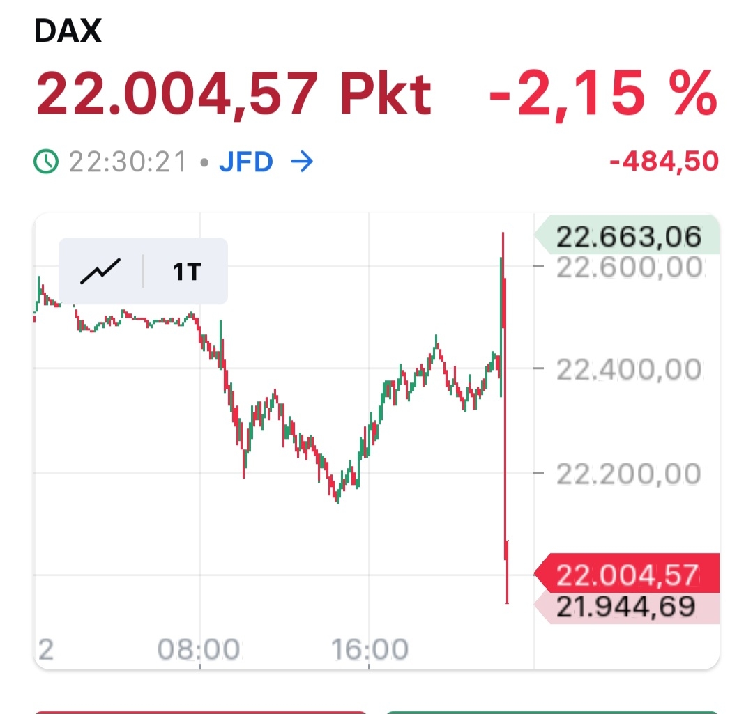 die Märkte stürzen also heute Morgen ab. Dank sei Trump. Zölle ohne Ende und ziemlich unterschiedlich. Während England mit nur 10% gestreichelt wird, gibt´s für die Chinesen 34%. Möchte Trump jetzt lieber die Chinesen im Land haben, denn bei 34% müssten die Chinesen als Erste die Produktion in die USA verlagern. Die Reaktionen fallen bisher verhalten aus. Frau von der Leyen glaubt immer noch an Verhandlungen; Japan muss erst überlegen. Was haben die Politiker gemacht? Man konnte sich schon seit Trump´s Antritt zur Wahl vorbereiten.