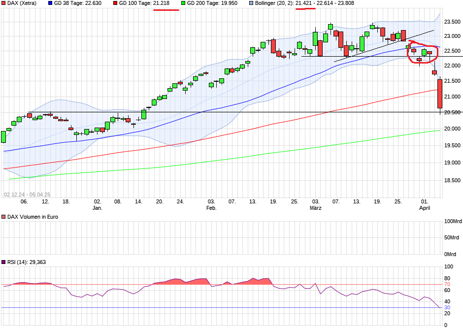 Nächste Widerstände: 21.800 = Februartief | 21.800 = Januarhoch | 21.978 = März-Tief