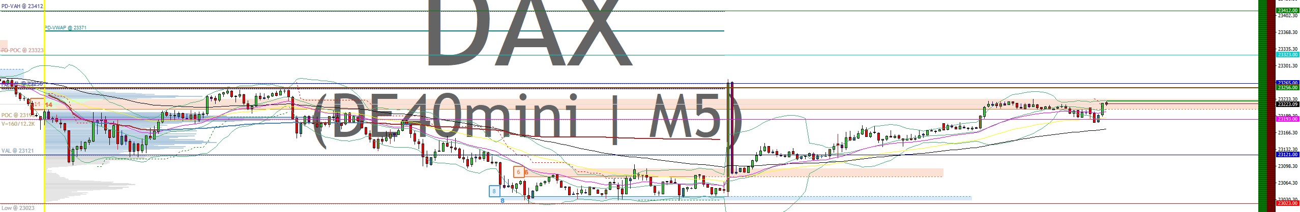 Heute ist ein besonderer Tag, großer zweiter Derivateverfallstermin des Jahres. Es gibt also auf den DAX einwirkende Sondereffekte. Höhepunkt des Events ist im DAX gegen 13 Uhr. Wäre der DAX-Tag normal, würde gelten: Gestern wurde das untere DAX-Kursziel 23.019 erreicht. Es ergab sich aus der blauen Aufwärtsflagge. Die daraus resultierende Gegenbewegung von 23.019 läuft seit heute Nacht und trifft bei 23.285 auf ihr Ziel. DAX 23.285 ist neuer aktueller Widerstand. Ausgehend von 23.285 bzw. erweitert ab 23.325/23.350 fällt der DAX ab 8 Uhr oftmals für einige Minuten oder Stunden bis 23.166/23.130 (Kijun/H1 und PP). Ab 23.166/23.130 gibt es dann neue DAX-Anstiegschancen, erneut bis 23.285 (bzw. 23.325/23.350)."
