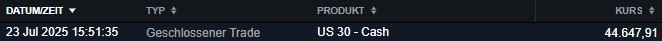 Der Dow Jones pendelte gestern in der Eröffnungsphase zunächst seitwärts und zog danach an. Damit zeigte er eine zuletzt ungewohnte Stärke gegenüber dem Nasdaq 100. Der Dow Jones erreichte im späten Handel seinen Abwärtstrend seit 03. Juli. Um 13:03 Uhr wird der Index bei 44.712 Punkten und damit 210 Punkte über seinem gestrigen Schlusskurs getaxt. Damit deutet sich ein Ausbruch aus dem Abwärtstrend an.