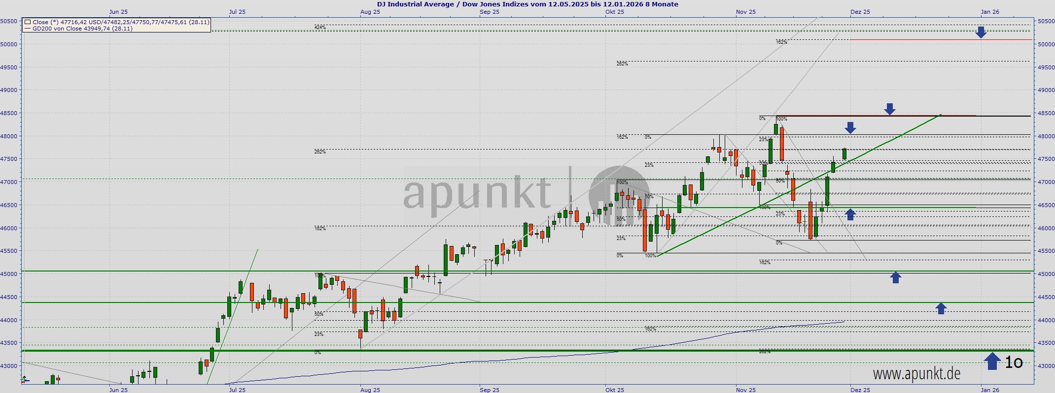 Zuerst wurde die kurzfristige Abwärtstrendlinie geknackt und am Dienstag gab es bereits einen Tagesschluss deutlich über 47.000 Punkten.