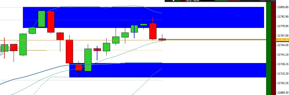 Zusätzlich schaue ich mir Inside und Outside Bar an sind im Chart blau für Inside und rot für Outside dargestellt.