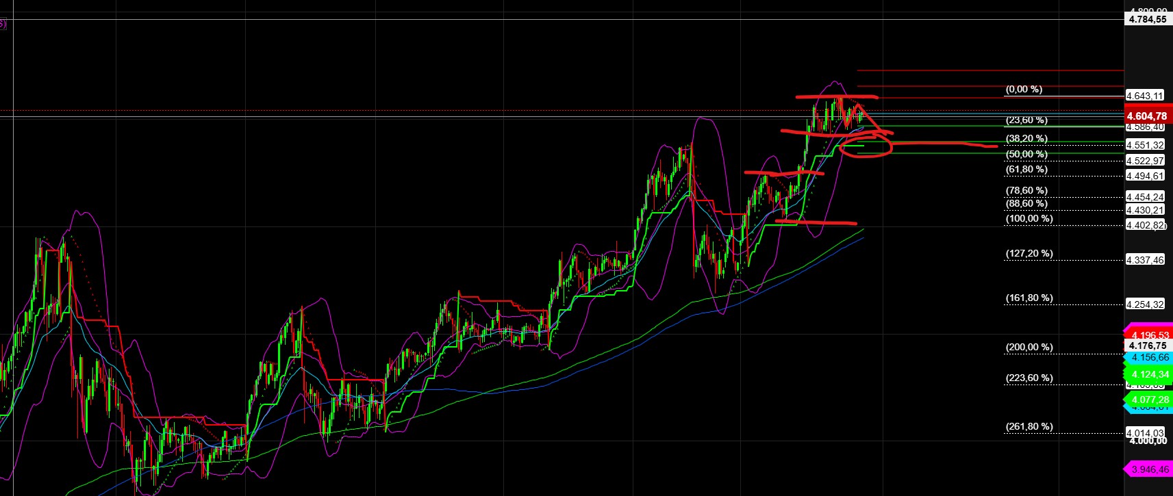 IG kann ein Hinweis auf den Montag sein, das muss sich aber nicht so erfüllen. Dieses ganze Wochenend-Getaxe mit hoher Vola ist auf IG m.E. auch ziemlich manipulativ. Umsonst gibt es auf IG auch nicht so viele Verlierer. Montag werden wir sehen, wie der Dax vorbörslich um 8 Uhr eröffnen wird, entscheidend ist für mich dann aber der Xetra-Dax ab 9 Uhr. Da ich zum WE im Daxtrading immer flat bin, kratzt es mich absolut nicht, wie der Dax am Montag eröffnet. Es werden sich Montag wieder gute Chancen in beide Richtungen ergeben und die gilt es dann mit einem guten CRV im Daxchart herauszuarbeiten. Es ist jedoch sehr wahrscheinlich, dass der Dax jede Möglichkeit nutzt, um die runde 25.000 und die 24.771 (altes ATH!) nochmals von oben kommend auf Nachhaltigkeit und neuer Unterstützung hin zu testen. Ferner befinden sich unterhalb der 25.000 noch zwei Gaps, die der Dax vielleicht auch gerne schließen möchte. Soll der Dax doch diese beiden Gaps schließen und sich dort angelangt erst neu entscheiden, ob er eine größere Korrektur einleitet oder sich wieder gen Norden orientieren wird. Aber eines steht fest: In beide Richtungen ergeben sich intraday wieder gute Trading-Chancen. Beginnt der Dax nun am Montag mit einem kräftigen Down-Gap, bin ich auf der Shortseite zwar erstmal nicht dabei, aber ich bekomme schöne neue Signal, auf die ich mich schon mal freuen kann. WahnSee hat ja schon mal in # 398 und in # 399 im Vorfeld zwei wunderbare Bildchen reingestellt, dass der Dax ohnehin Richtung 25.000 konsolidieren könnte. Kurzum: Montag wissen wir dann alle mehr und darauf bin ich gespannt.