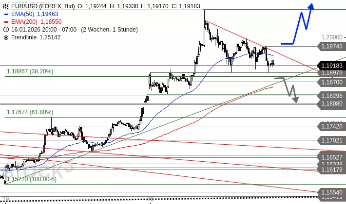 Mit dem Ausbruch über 1,1919 USD hat EUR/USD in dieser Woche ein neues mittelfristiges Kaufsignal geliefert. Dieses sollte EUR/USD zu einer Rally in Richtung 1,27 und 1,31 USD befähigen. Im kurzfristigen Bereich ergäbe sich ein neues Kaufsignal mit einem Ausbruch über 1,1975 USD. Dann wären kurzfristig Gewinne bis 1,2082 und 1,2349 USD möglich. Sollte EUR/USD aber unter die Retracement-Unterstützung bei 1,1887 USD abfallen, müsste mit Abgaben gen 1,1808 USD gerechnet werden.