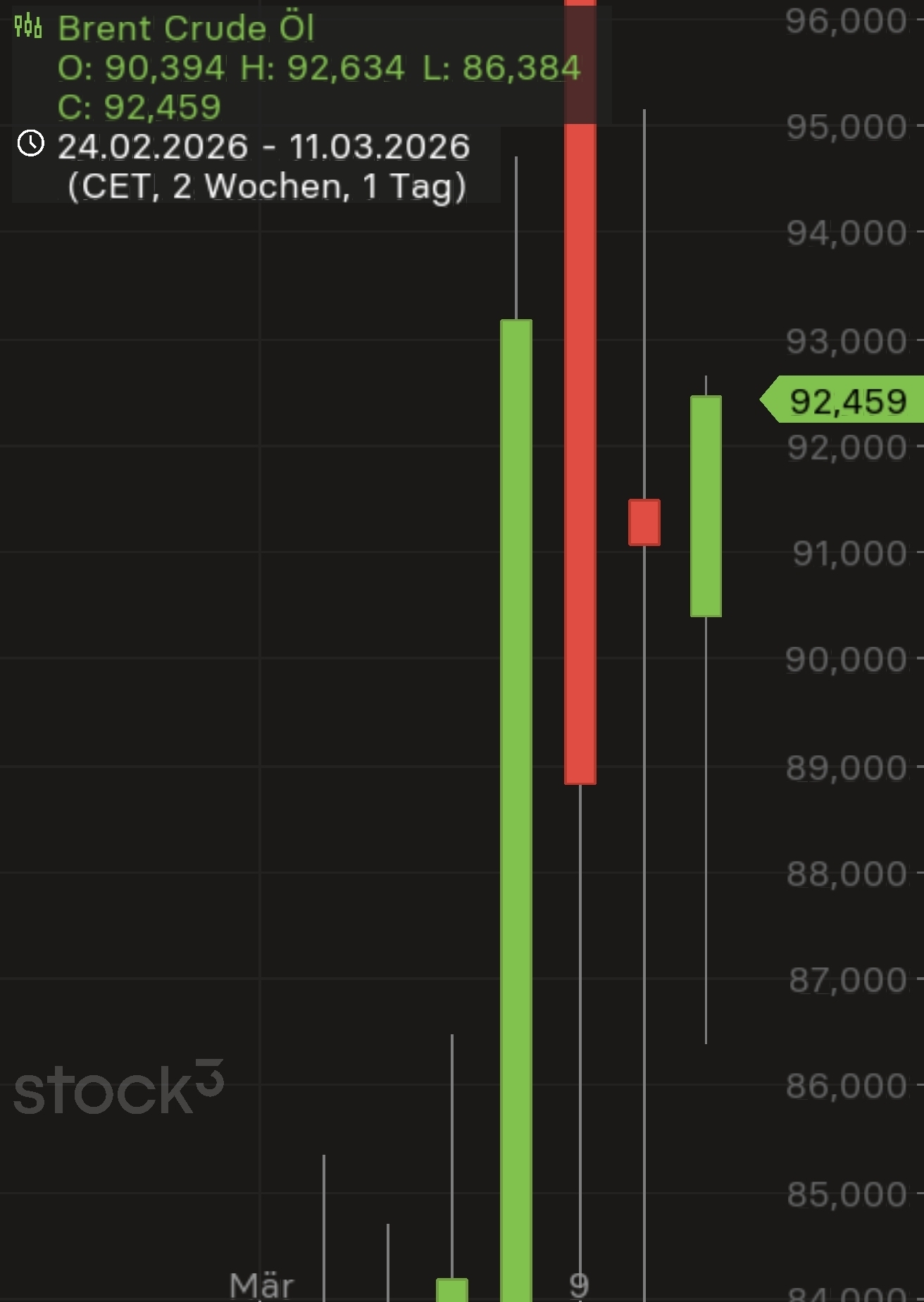 An der Konjunkturfront lagen die deutschen Verbraucherpreisdaten für Februar vor Börseneröffnung um 08:00 Uhr exakt im Rahmen der Erwartungen. Der VPI sank im Jahresvergleich auf 1,9 Prozent (Vormonat: 2,1 Prozent) und liegt damit erstmals seit langer Zeit wieder unter der EZB-Zielmarke von 2,0 Prozent, ein Signal, das Zinssenkungsfantasien weiter befeuern dürfte. EZB-Vizepräsident De Guindos spricht um 9:30 Uhr; um 11:00 Uhr folgt der OPEC-Monatsbericht. Das entscheidende Ereig-nis des Tages kommt aus den USA. Um 13:30 Uhr werden die US-Verbraucherpreisdaten für Februar veröffentlicht. Der Markt erwartet eine Jahresrate von 2,4 Prozent sowie eine Kernrate von 0,2 Pro-zent im Monatsvergleich, nach 0,3 Prozent im Vormonat. Ein schwächerer Wert würde dem DAX Auf-trieb verleihen und könnte den Durchbruch über den 200er-EMA begünstigen; eine Überraschung nach oben dürfte die Erholung hingegen abwürgen. Auf Unternehmensseite legen Rheinmetall, Hen-kel, Wacker Chemie, Campbell’s und Porsche AG ihre Quartalszahlen vor. Geopolitisch bleibt der Iran-Konflikt das Hintergrundthema. Brent-Rohöl notiert weiterhin bei rund 88 Dollar je Barrel, WTI bei aktuell 84 Dollar.