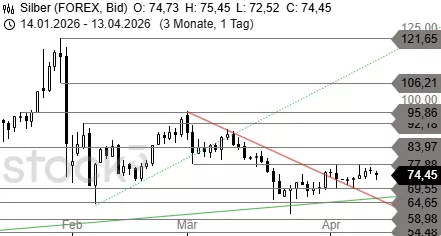 Silber befindet sich weiter auf halber Strecke zwischen der Unterstützung bei 69,55 USD und dem zentralen Widerstand bei 77,88 USD. Aktuell ist mit einem weiteren Ausbruchsversuch über diese Hürde zu rechnen. Allerdings könnte das Edelmetall dort auch im zweiten Anlauf nach unten abprallen.