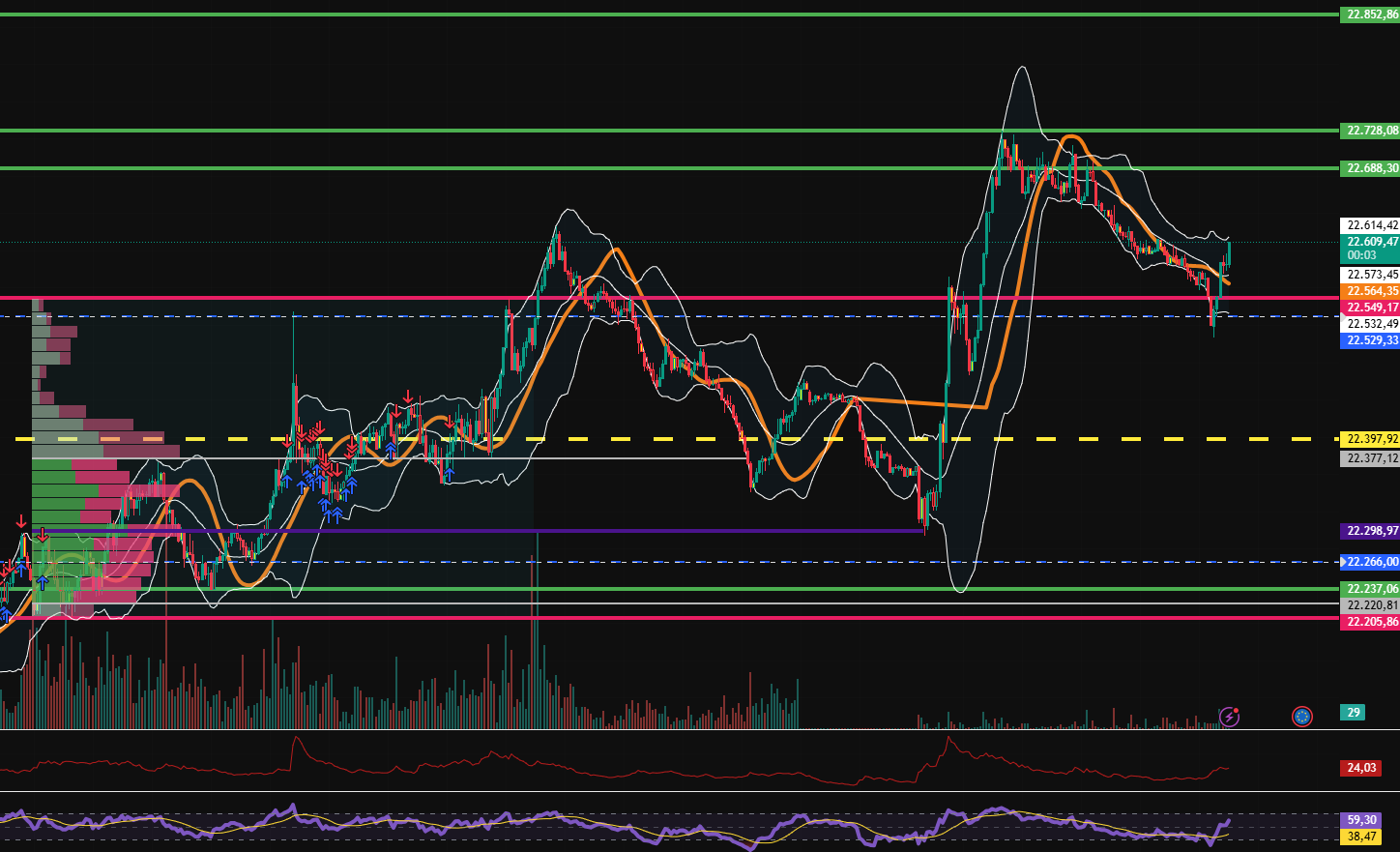 Gegen den allgemein postulierten  Bärentrend mit Long TP 22.590 mBB 240er.