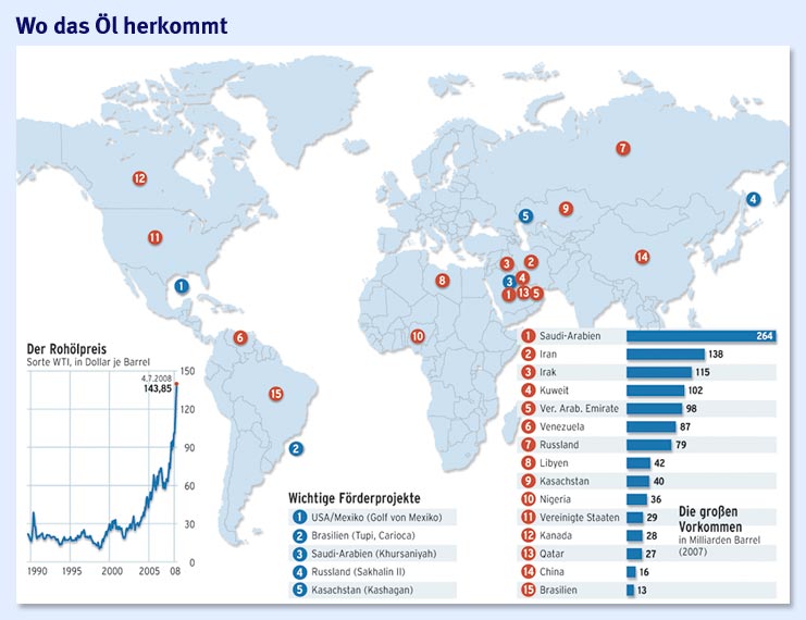 Bis 2012 werde das weltweite tägliche Fördervolumen von aktuell 75 Mio. auf 65 Mio. sinken, erwartet Simmons. Zugleich ziehe die Nachfrage rapide an. Schon wenn China und Indien pro Kopf so viel Energie verbrauchten wie das relativ arme Mexiko, müsste die tägliche Produktionsmenge um 45 Mio. Barrel steigen, um den Bedarf zu decken.