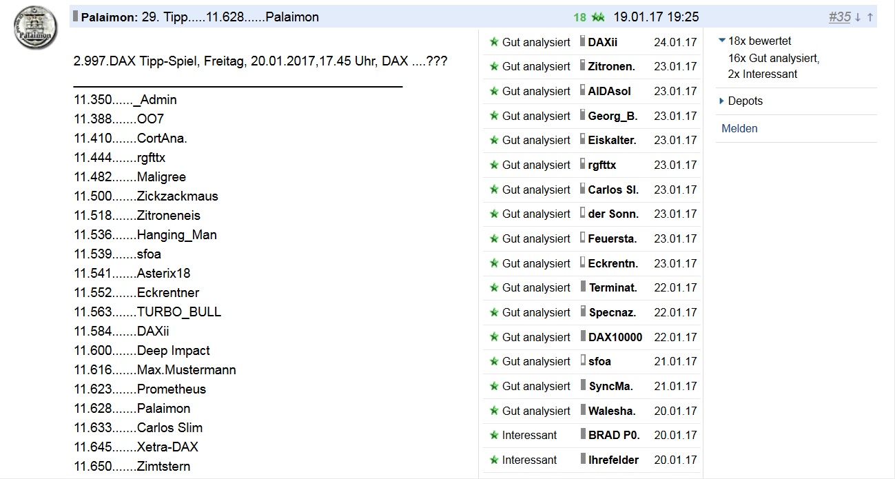 3.007.DAX Tipp-Spiel, Freitag, 03.02.2017,17.45 Uhr, DAX ....???