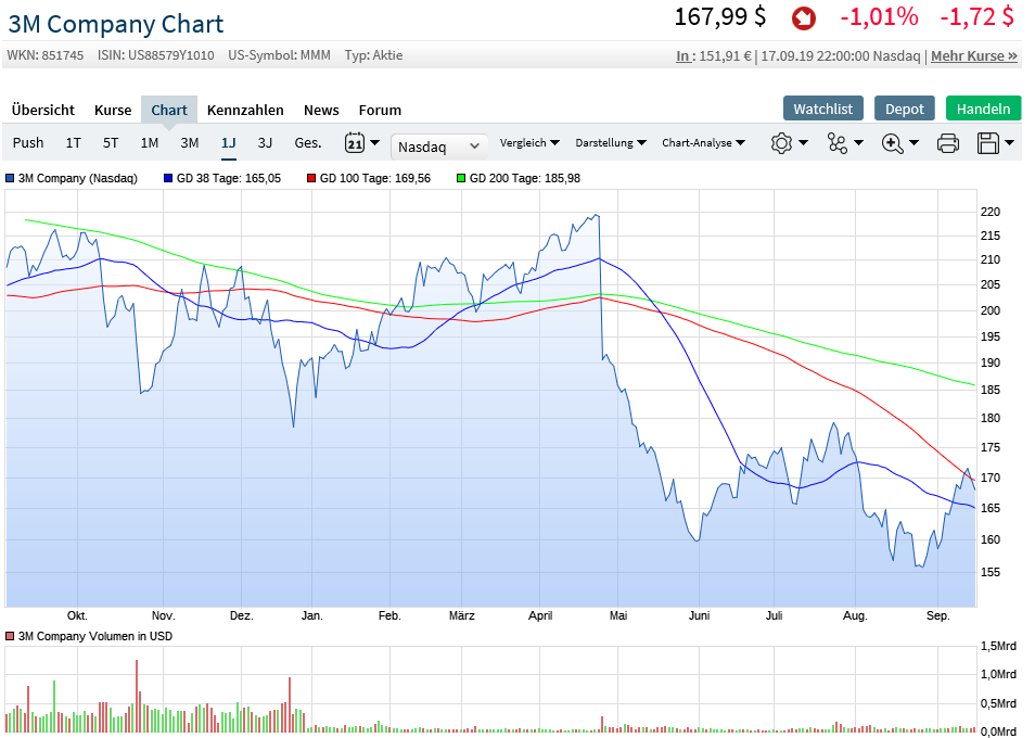 Alleine durch die ständige Dividendenerhöhung darf 3M eigentlich in keinem Langfrist-Depot fehlen...
