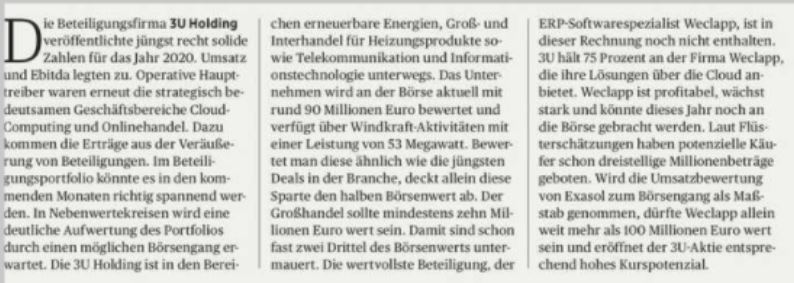 Marburg, 10. März 2021 Die 3U HOLDING AG (ISIN