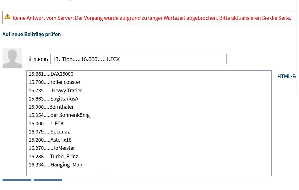 bitte 10 Minuten nach Tippabgabe den Tipp nochmal kontrollieren.