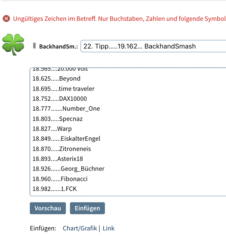 bitte 10 Minuten nach Tippabgabe den Tipp nochmal kontrollieren.