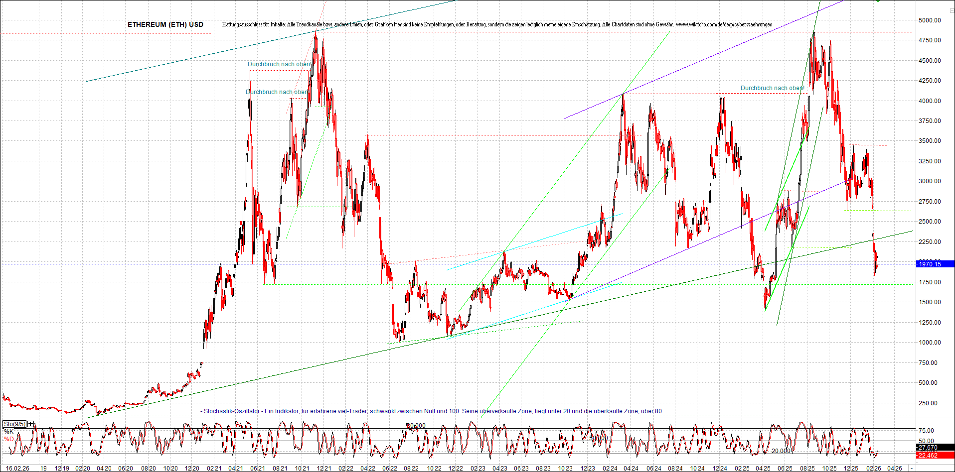 Mehr über die 4 und auch weitere 3 wikifolio-Endlos-Zertifikate gibt es hier. Aber bitte da nicht erschrecken wegen den charts, weil die wikifolios sollten die original-performance so getreu nachbilden wie möglich, aber die charts bei wikifolio zeigen leider nur ein kleines Zeitfenster. Deswegen habe ich hier die entsprechenden langfristigen original-performance-charts reingestellt. Die kann ich auch gerne ab und zu aktualisieren. Die Trendkanäle bzw. andere Linien, oder Grafiken in diesem thread sind aber keine Empfehlungen, oder Beratung, sondern sie zeigen ausschließlich meine eigene Meinung.