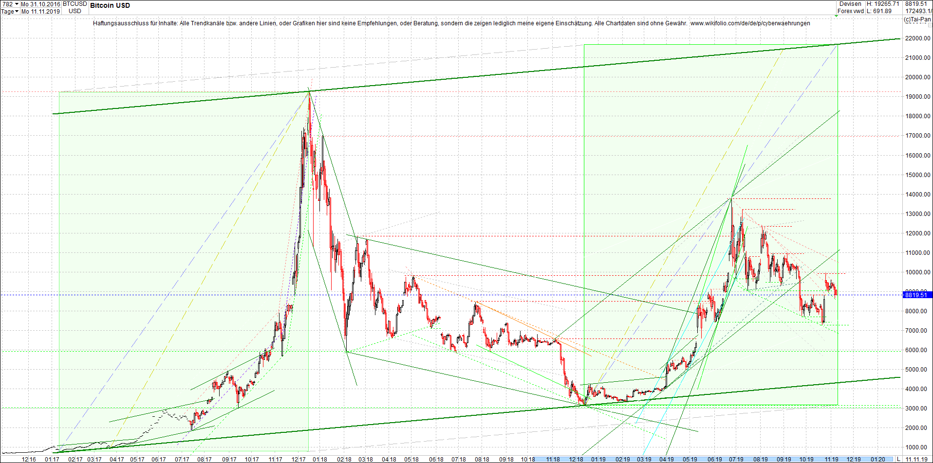 BITCOIN (BTC) chart heute, sehr langfristig.