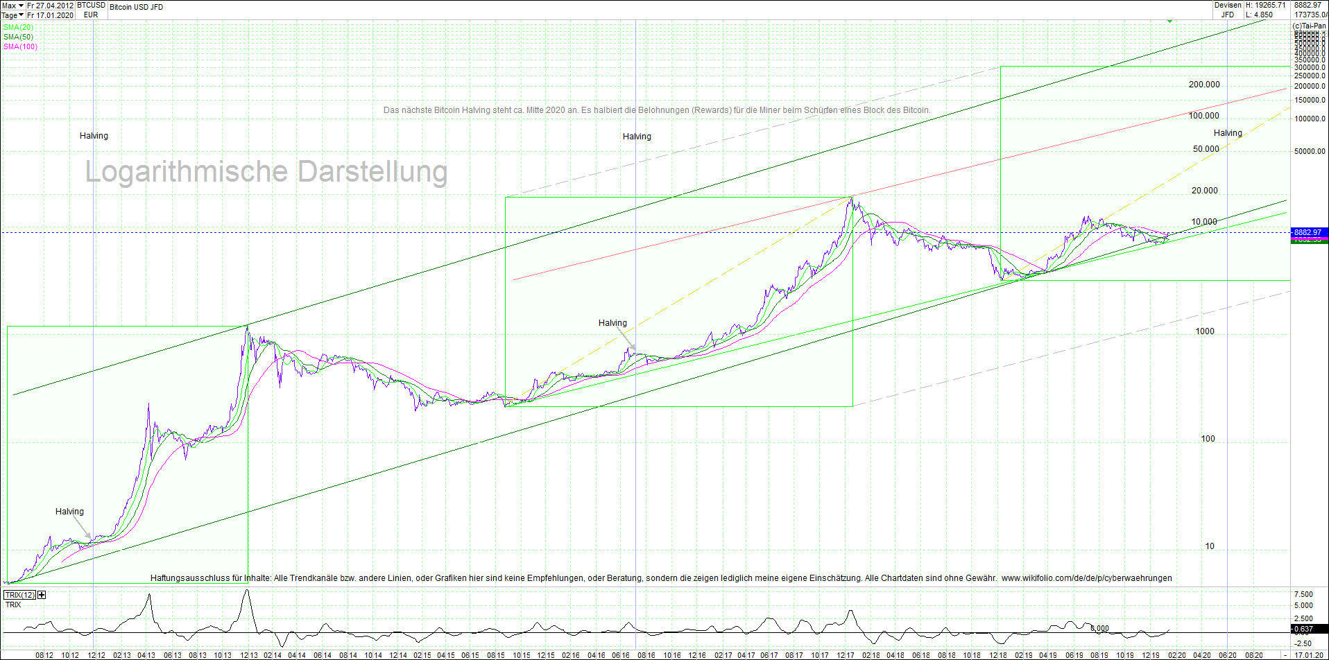 BITCOIN / BTC chart, sehr langfristig.