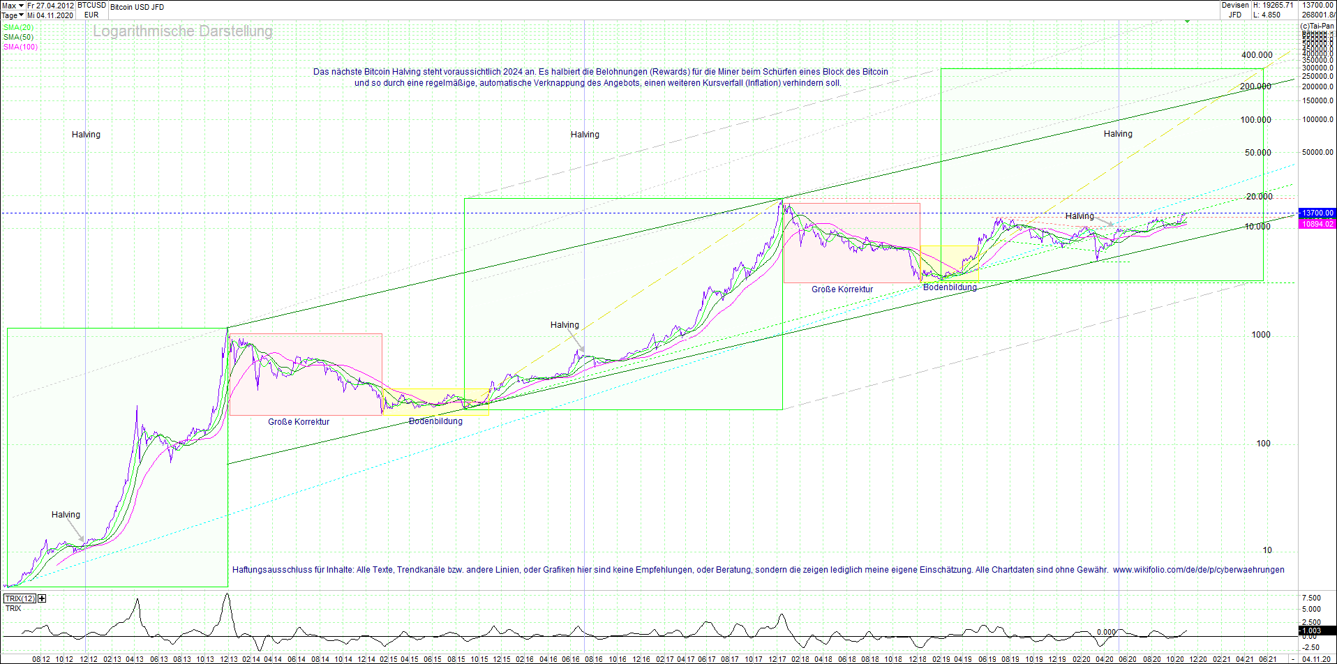 BITCOIN (BTC) chart heute, sehr langfristig.
