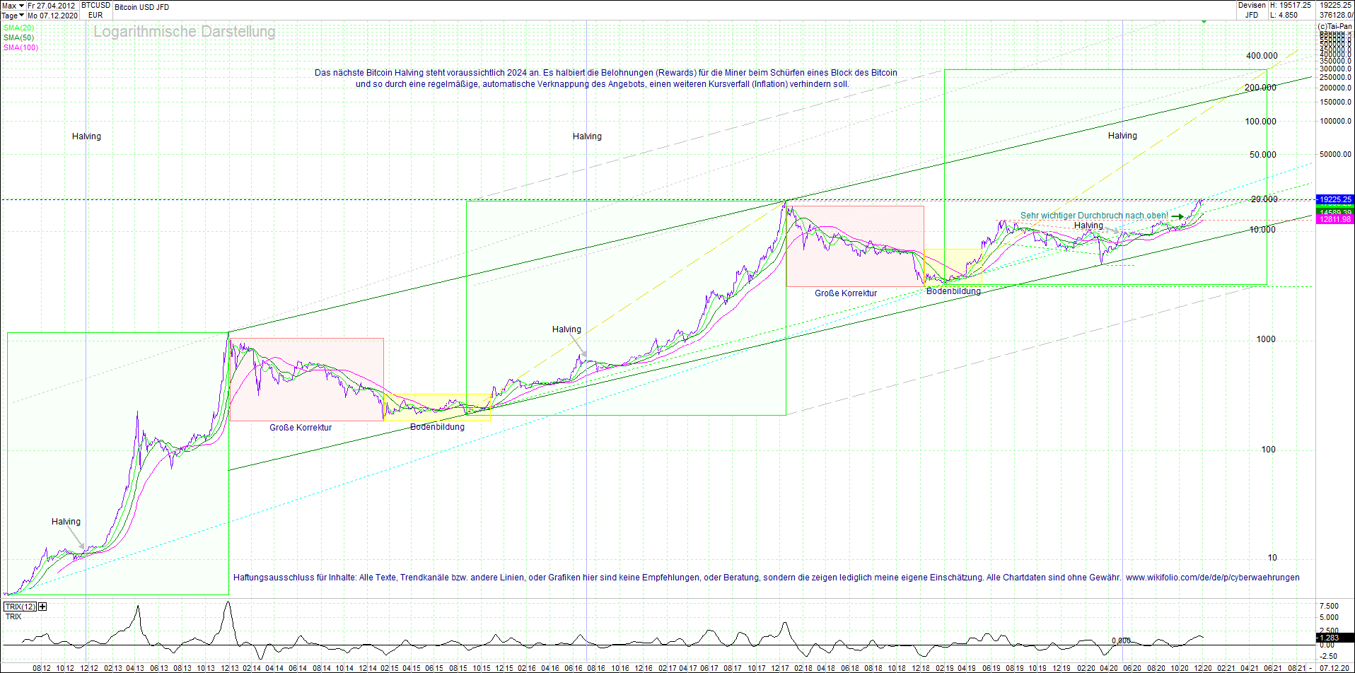 BITCOIN (BTC) chart heute, sehr langfristig.