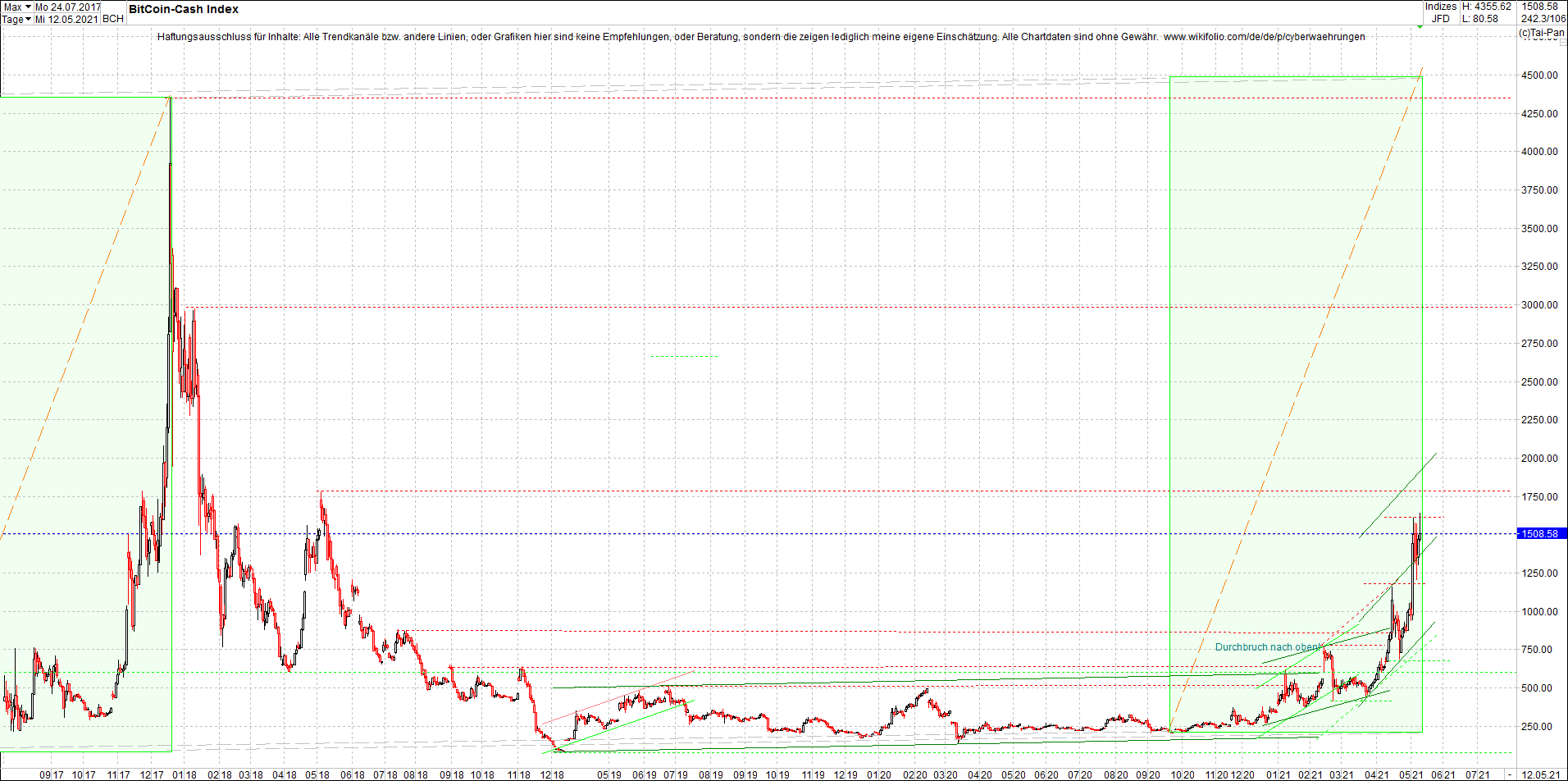 Bitcoin Cash (BCH) Chart heute am Morgen. Anbei das Zertifikat, jetzt mit Bitcoin Cash (BCH), bekannt als: Endlos-Zertifikat bezogen auf LUS Wikifolio-Index "Performance von Kryptowaehrung".