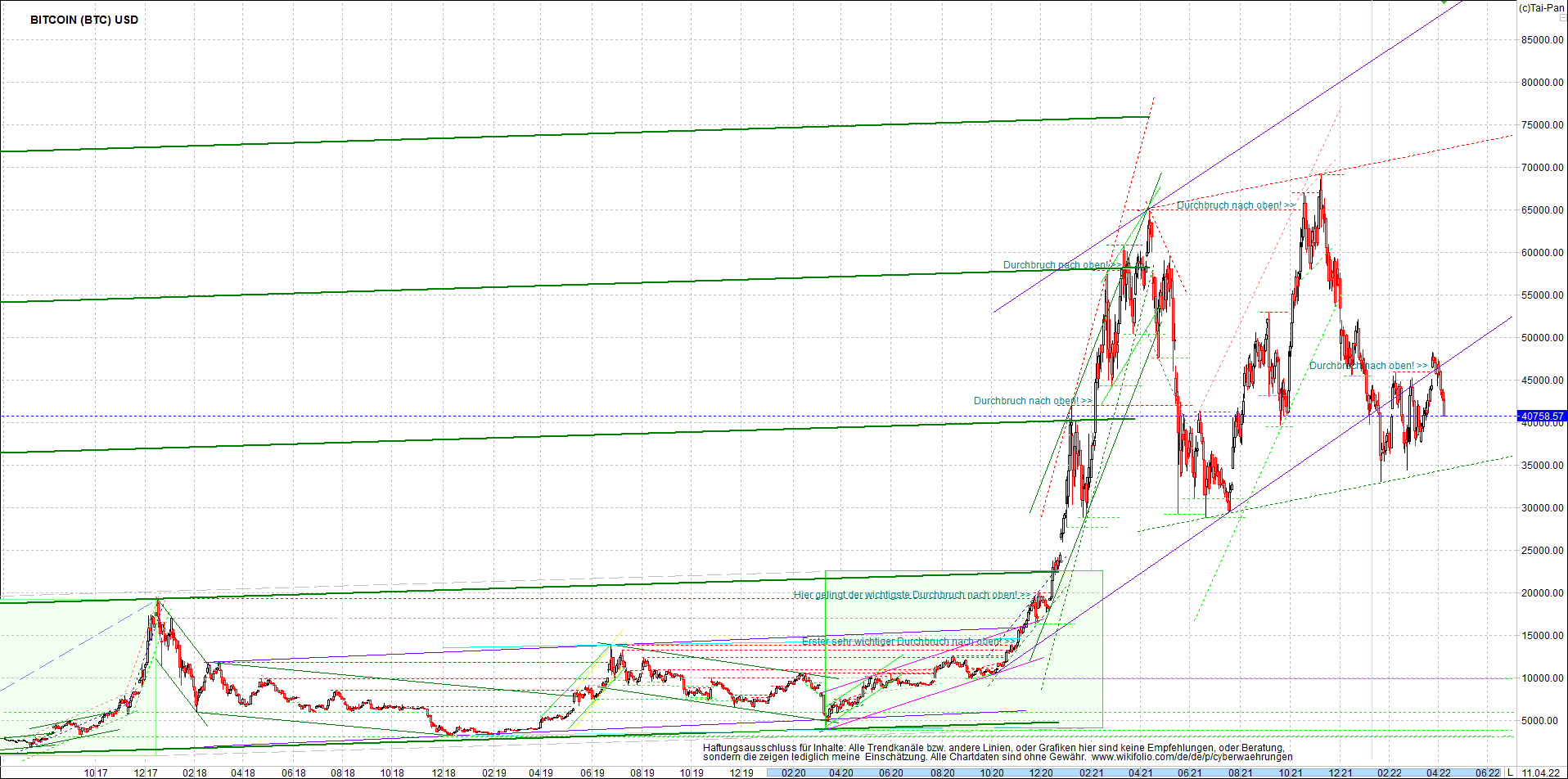 BITCOIN (BTC) Chart heute, sehr langfristig.