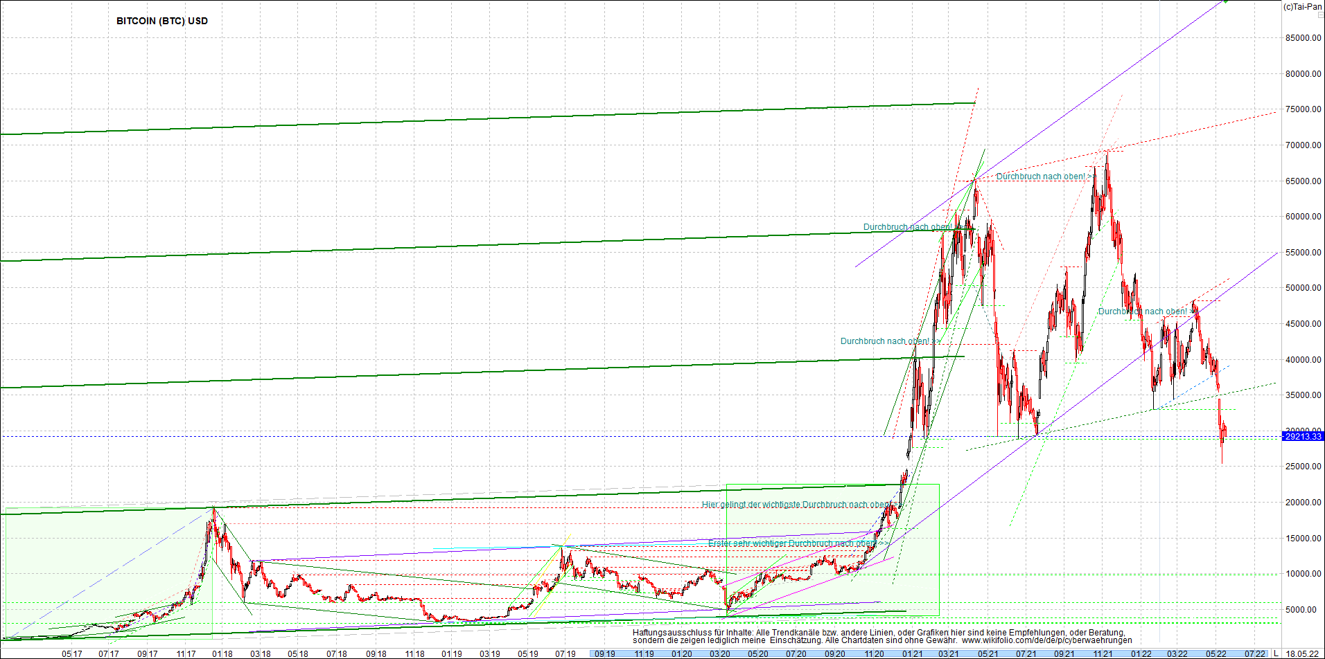 BITCOIN (BTC) Chart heute, sehr langfristig.