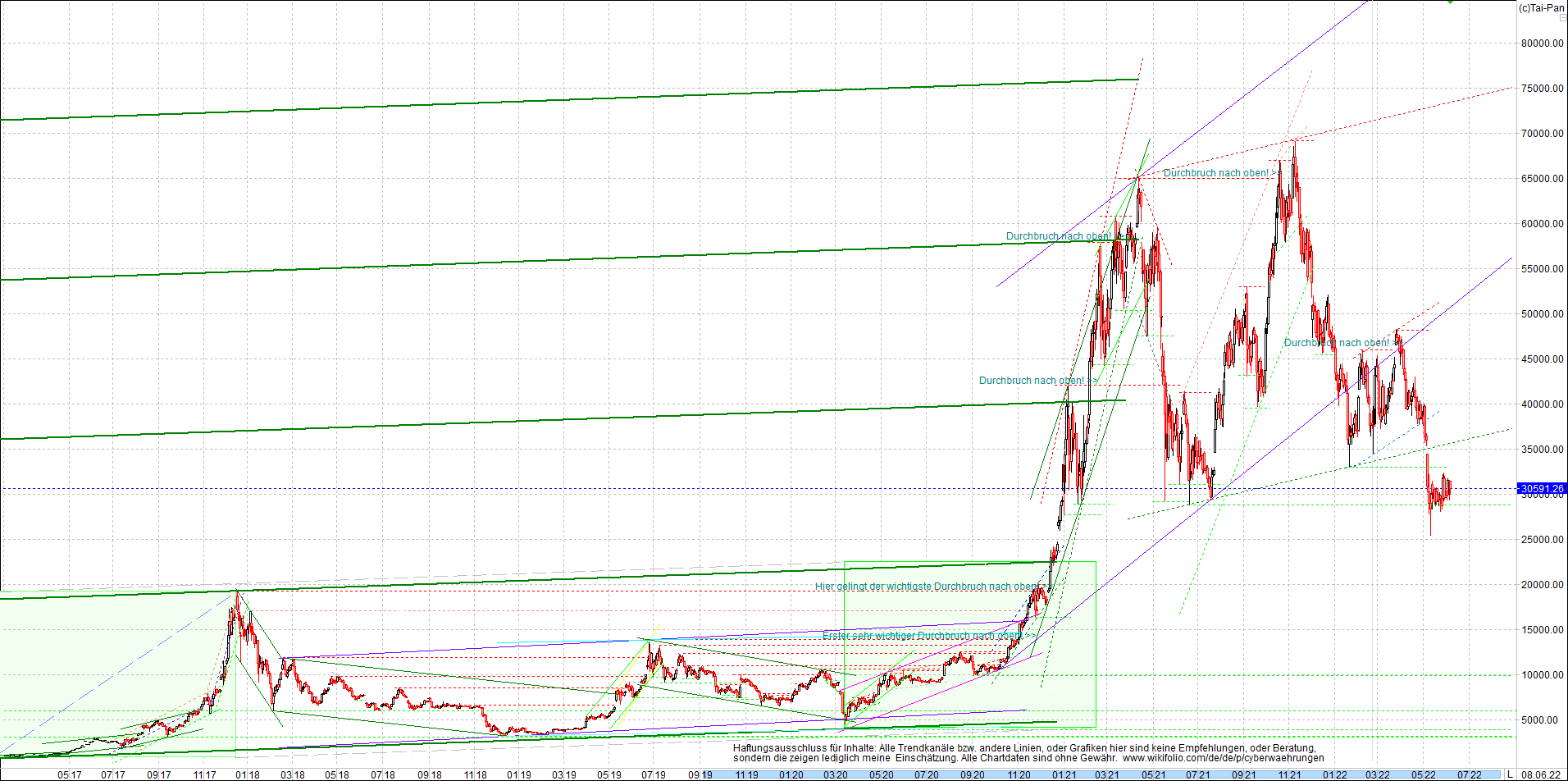 BITCOIN (BTC) Chart heute, sehr langfristig.