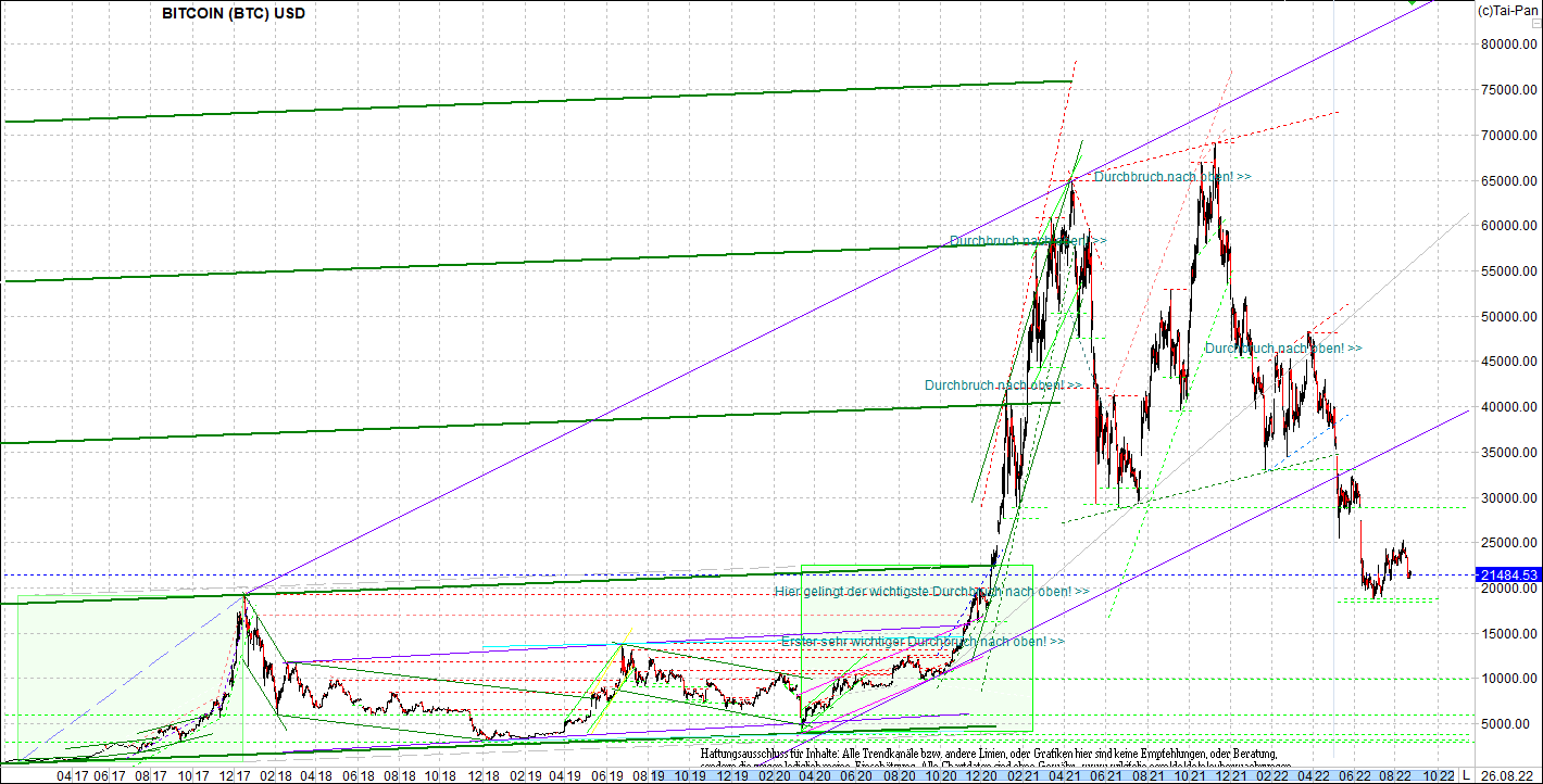 BITCOIN (BTC) Chart heute, sehr langfristig.