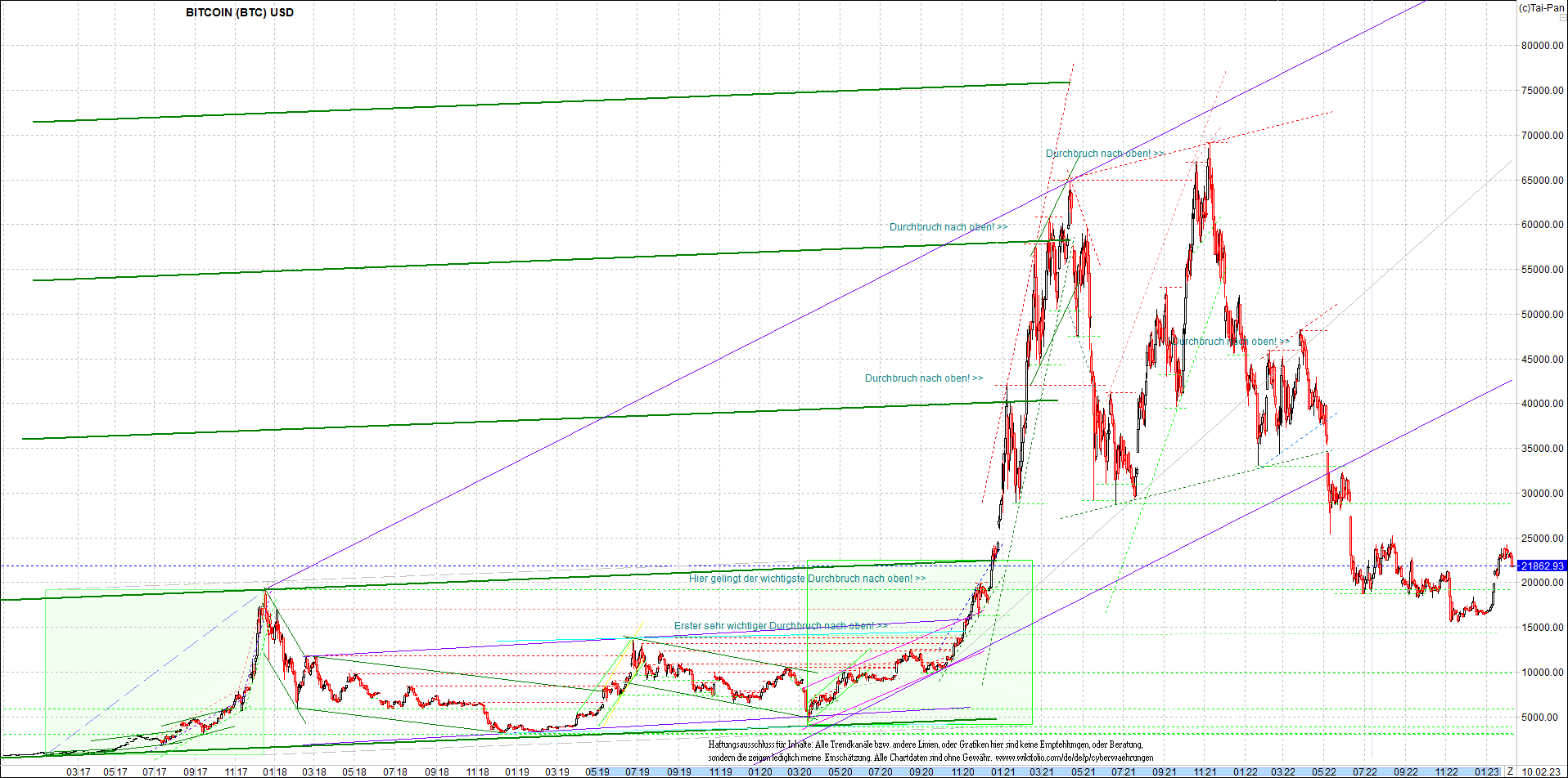 BITCOIN (BTC) Chart heute, sehr langfristig.