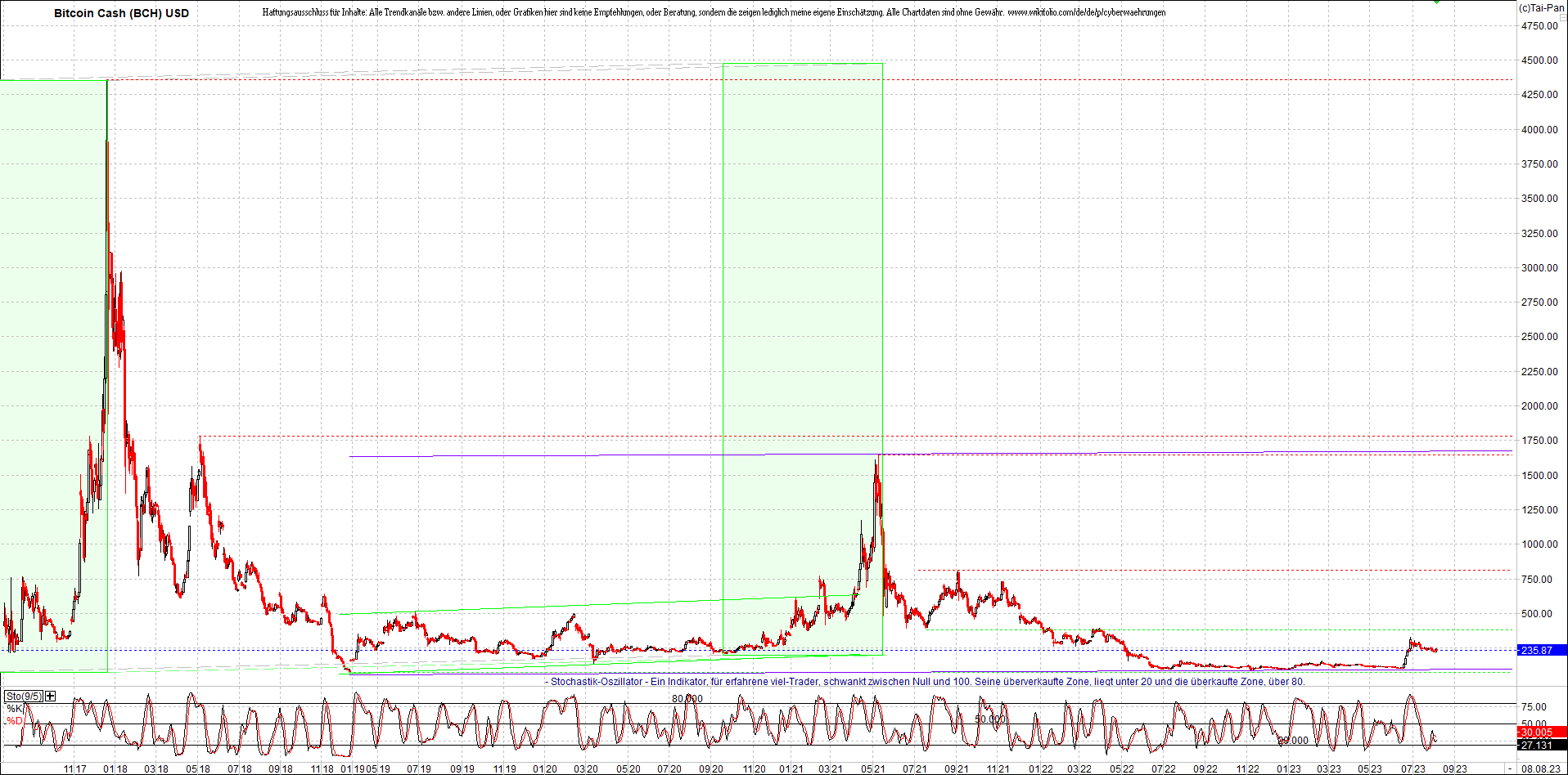 BITCOIN CASH (BCH) Chart. Oben das Zertifikat ...