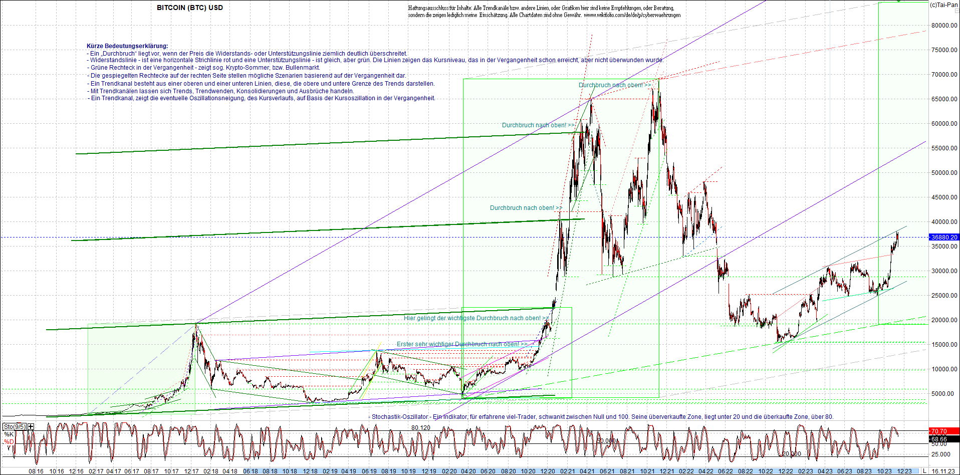 BITCOIN (BTC) Chart heute, sehr langfristig.