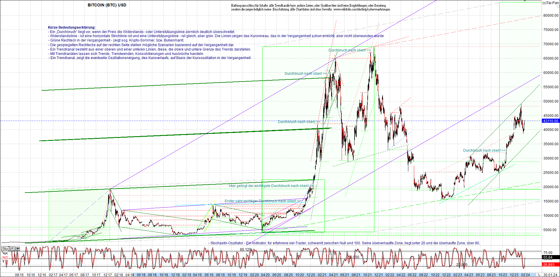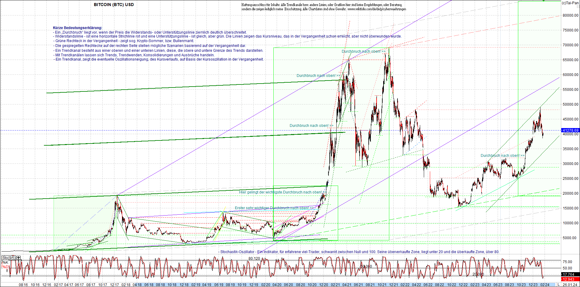 BITCOIN (BTC) Chart heute, sehr langfristig.