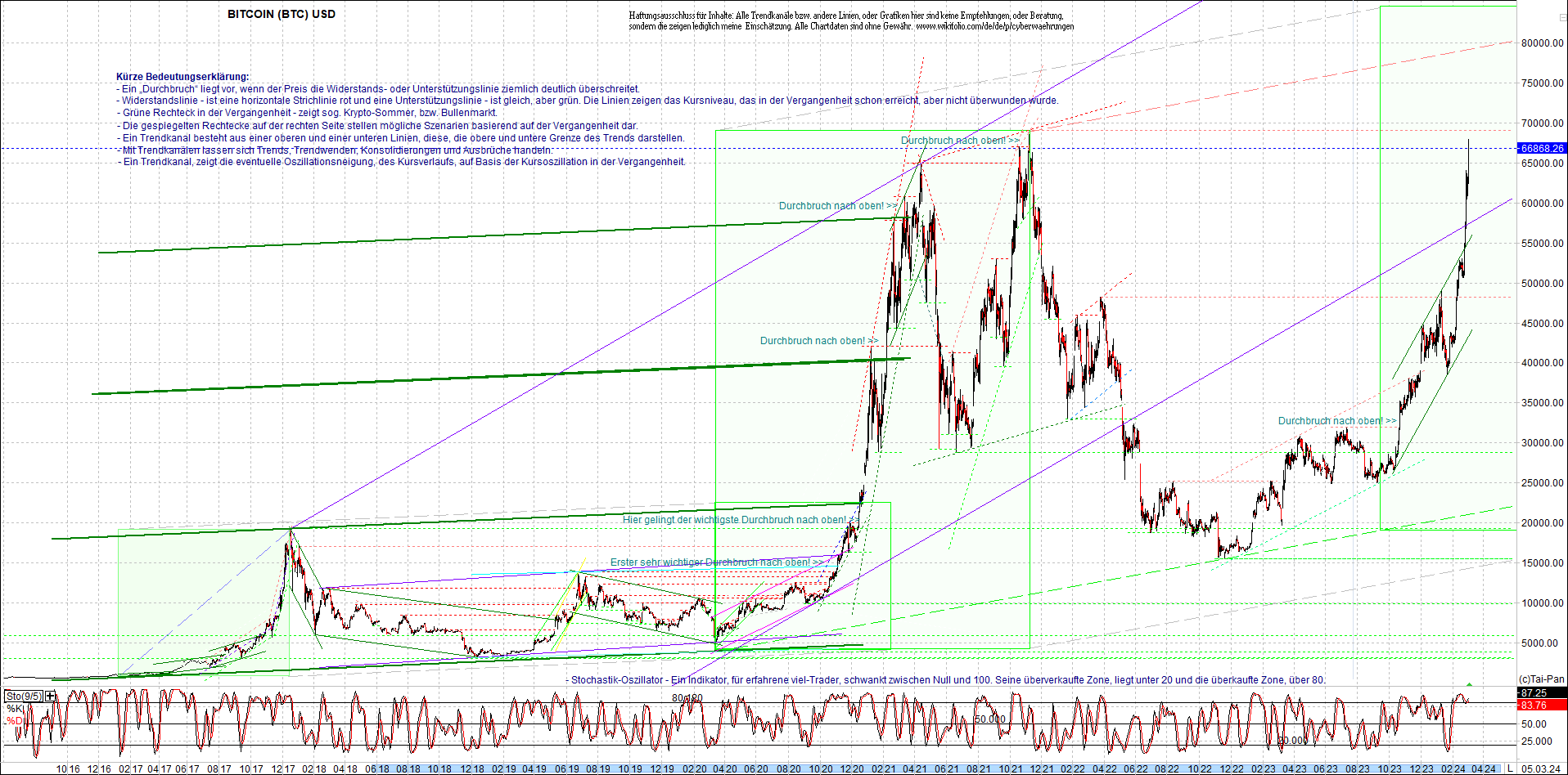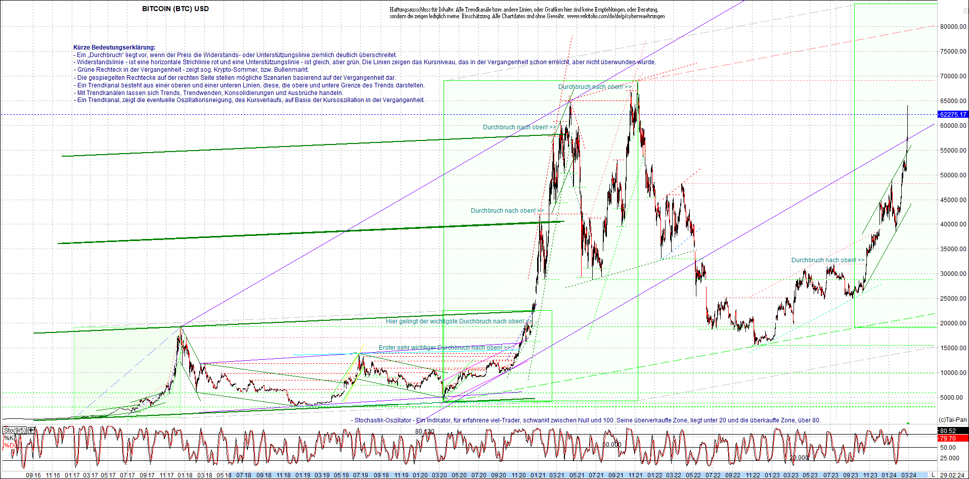 BITCOIN (BTC), Chart heute, sehr langfristig.