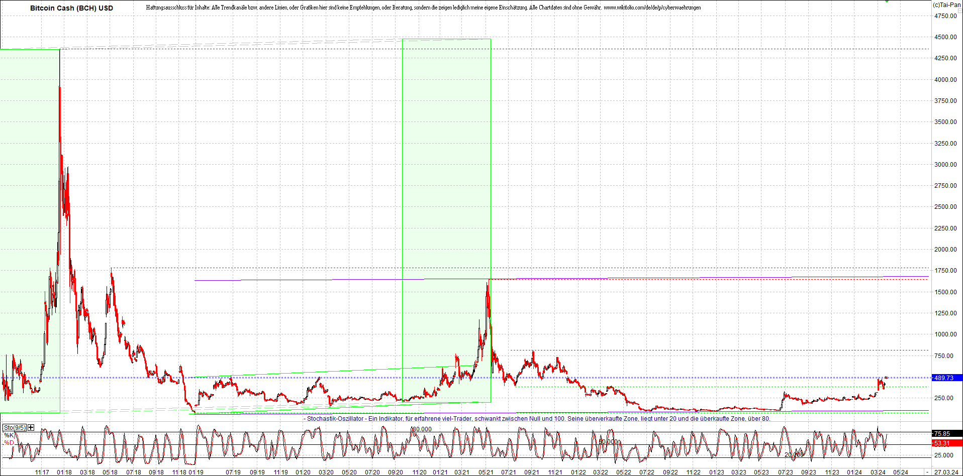 BITCOIN CASH (BCH) Chart. Oben das Zertifikat ...