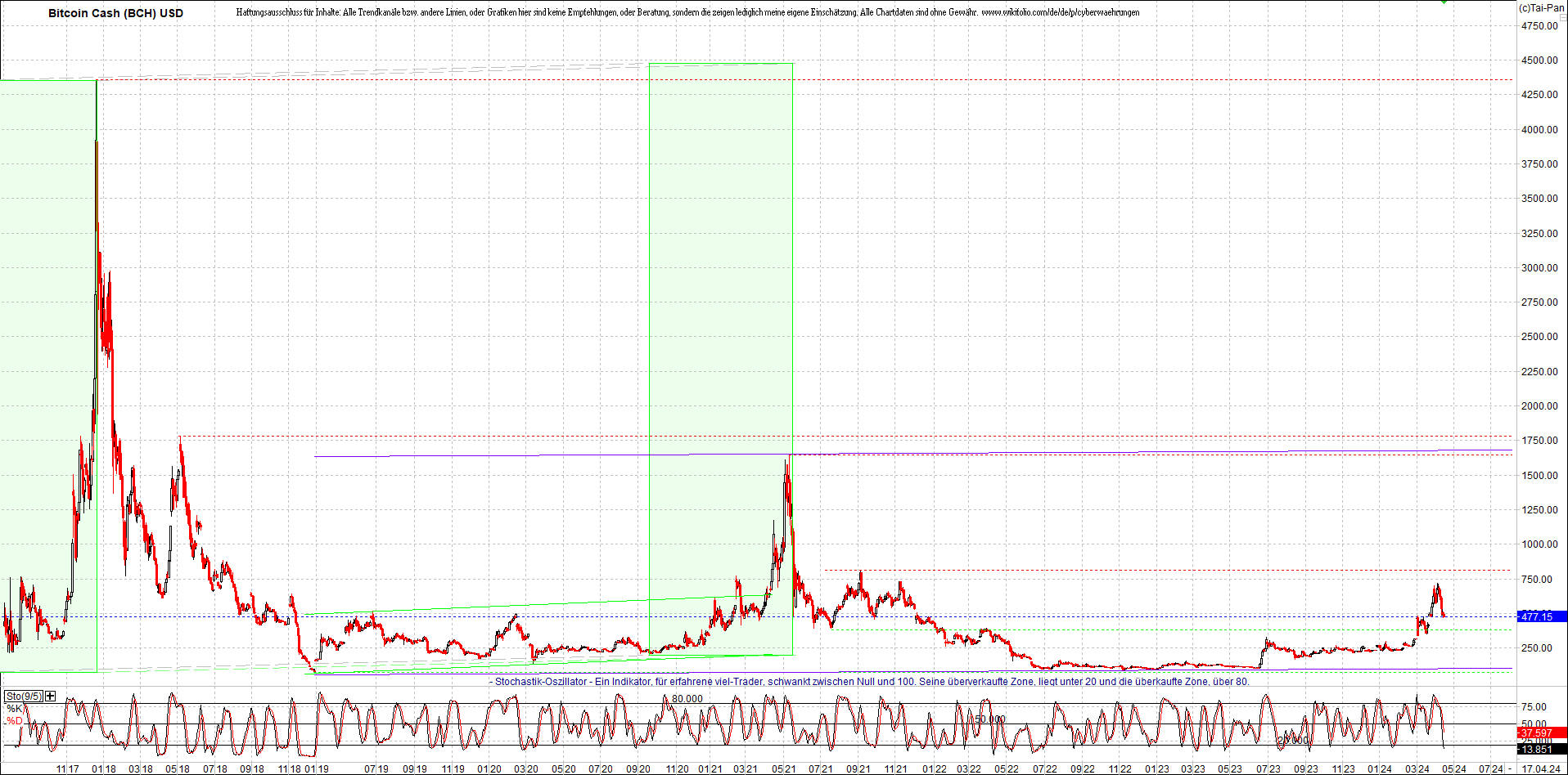 BITCOIN CASH (BCH) Chart. Oben das Zertifikat ...
