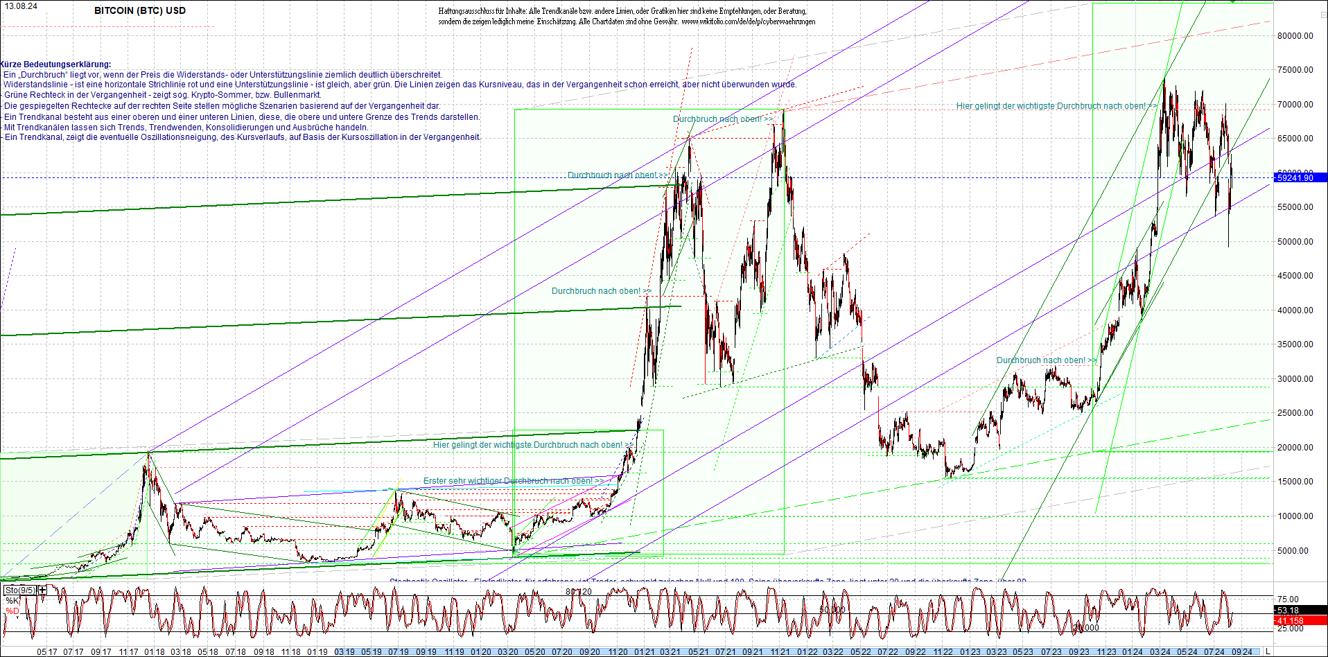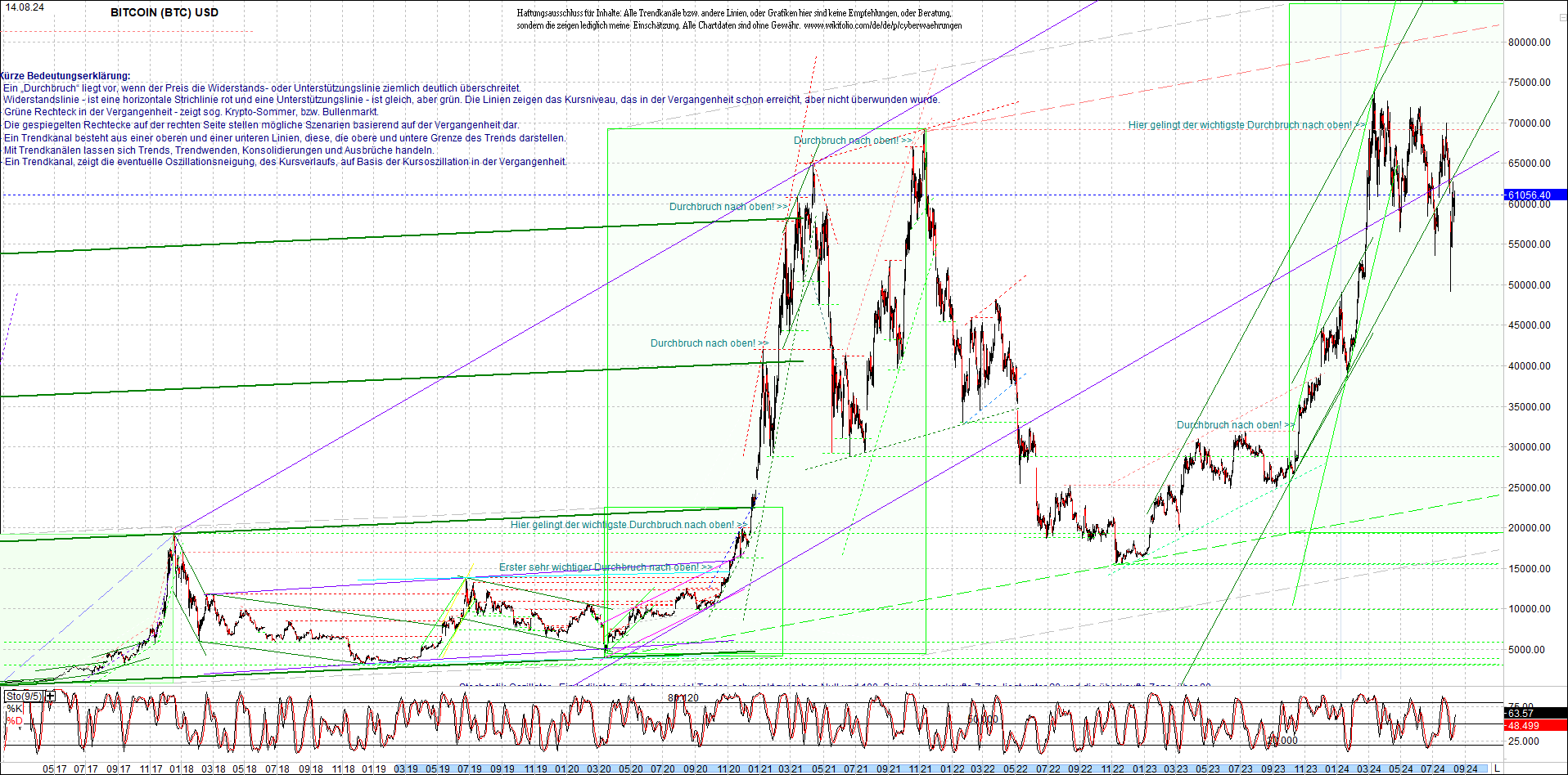 BITCOIN (BTC) Chart heute, sehr langfristig.