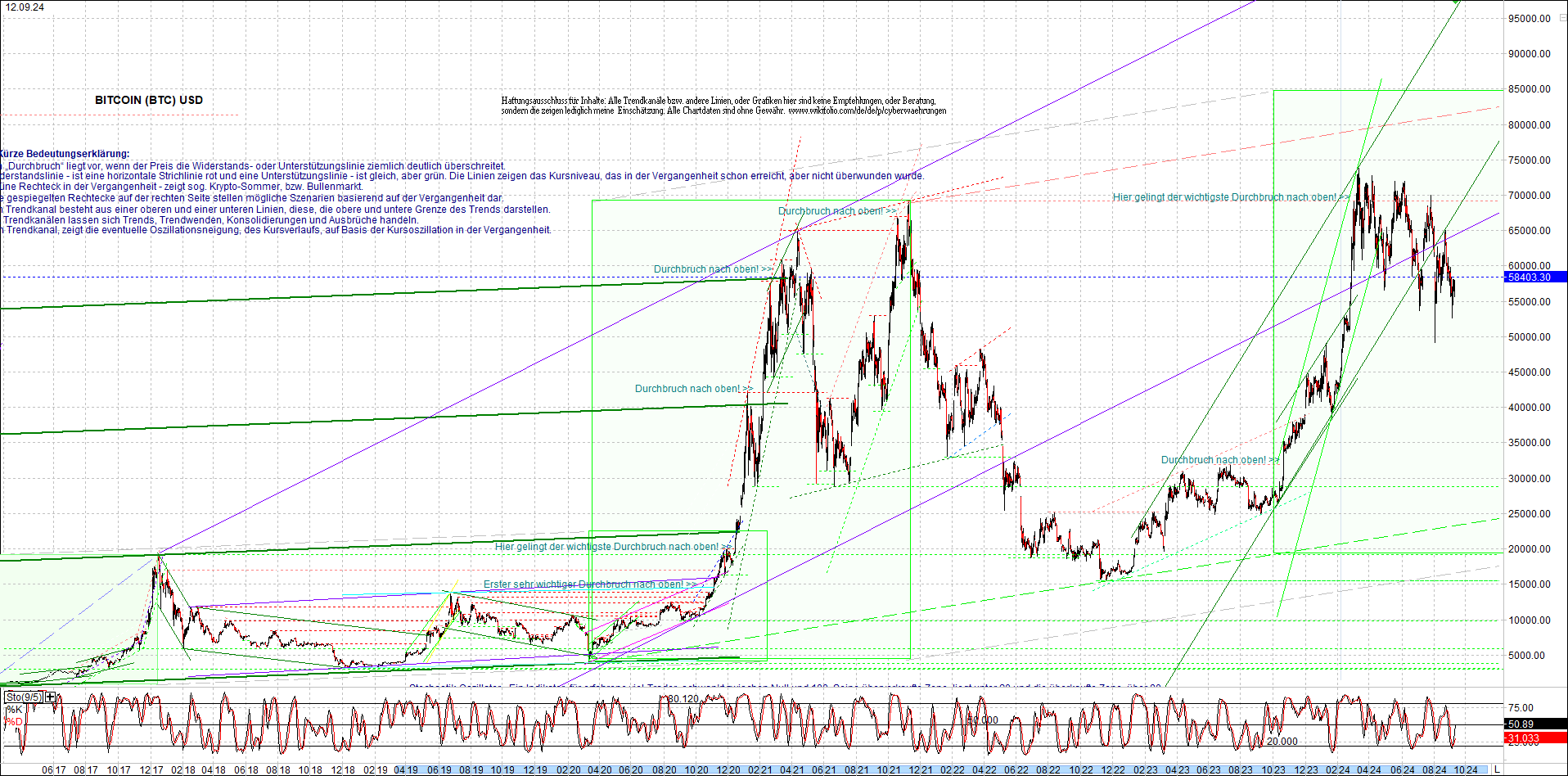 BITCOIN (BTC) Chart heute, sehr langfristig.