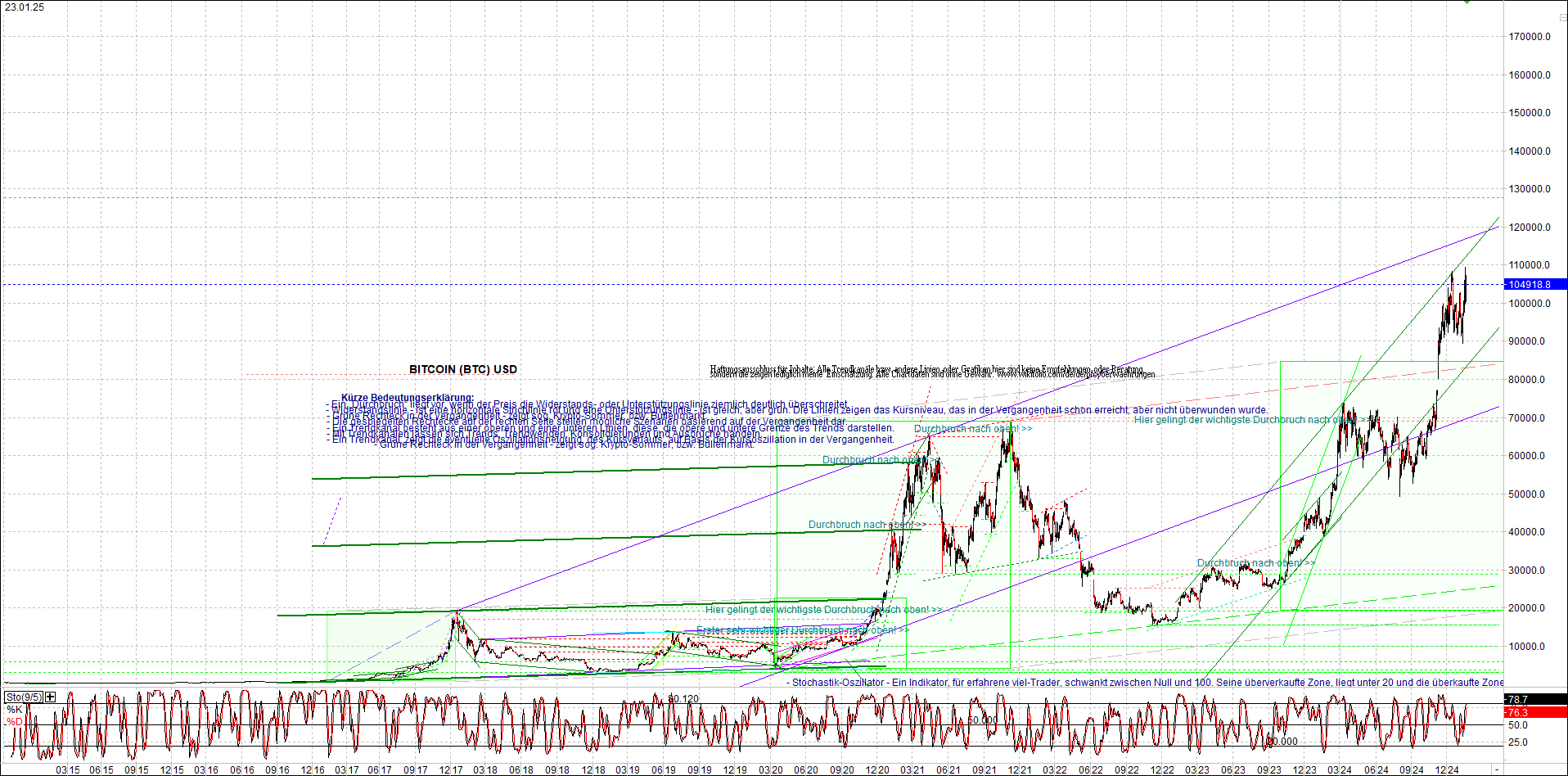 BITCOIN (BTC) Chart heute, sehr langfristig.