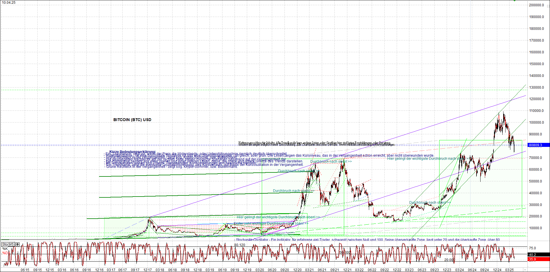 BITCOIN (BTC) Chart heute, sehr langfristig.