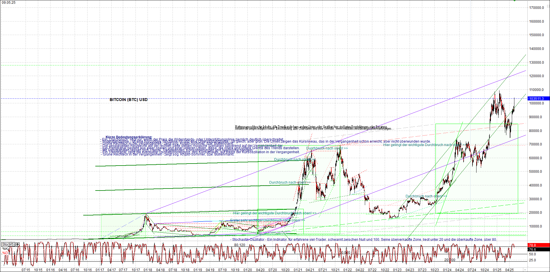BITCOIN (BTC) Chart heute, sehr langfristig.