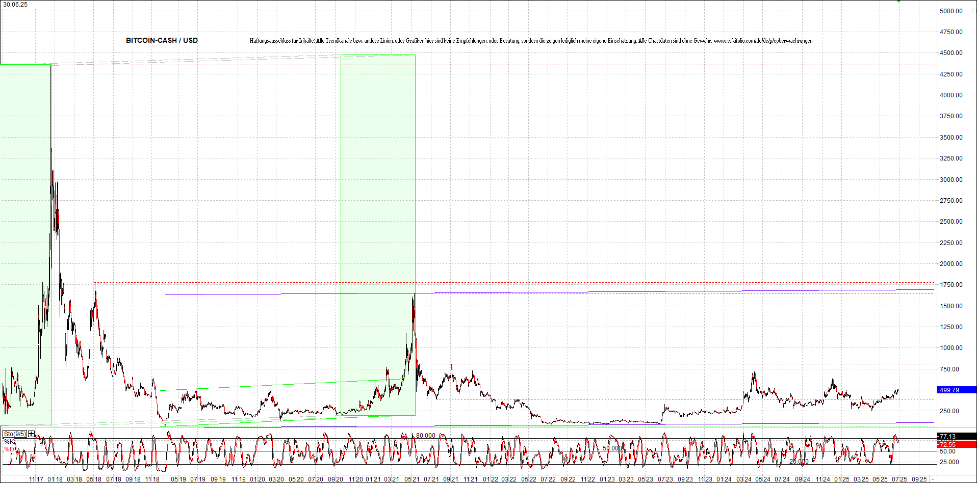 BITCOIN CASH (BCH) Chart. Oben das Zertifikat ...