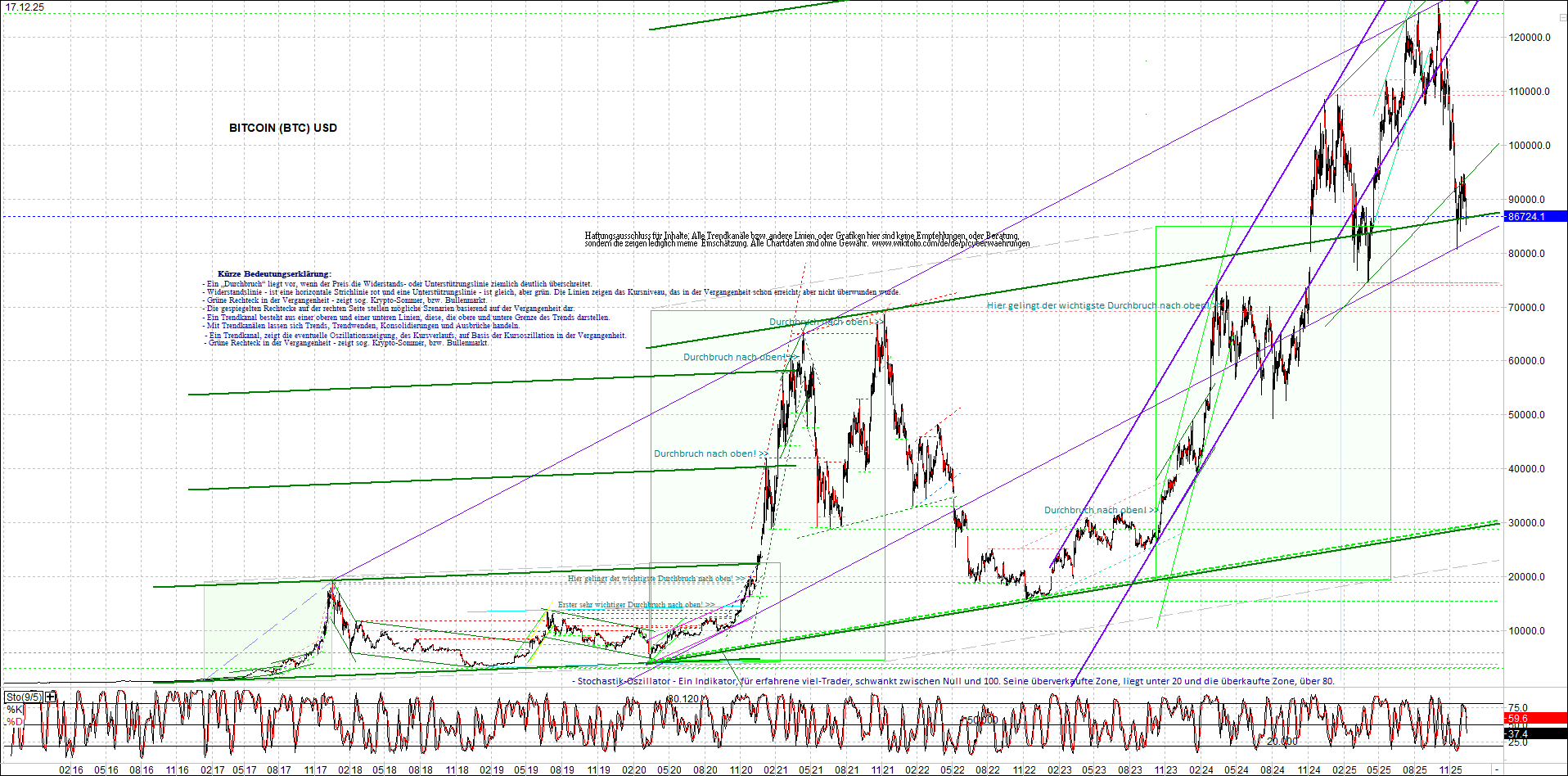 BITCOIN (BTC) Chart heute, sehr langfristig.
