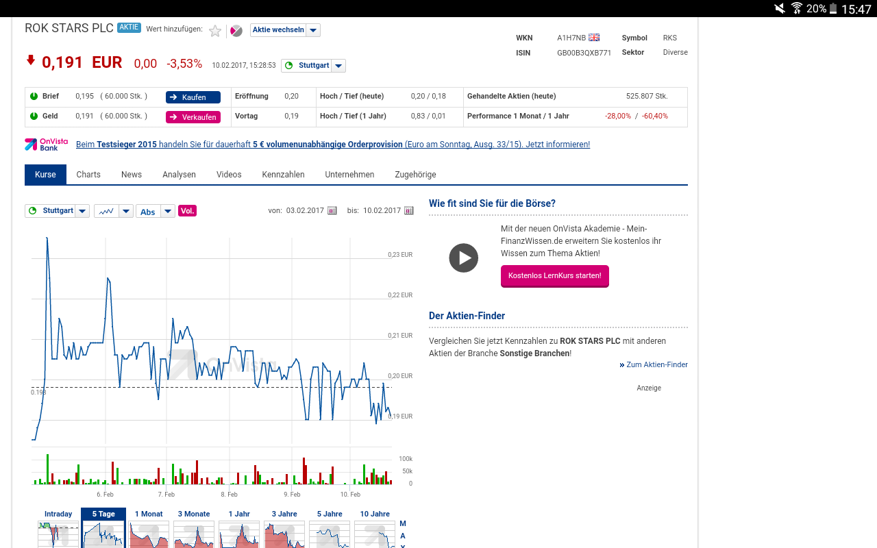 Ich habe gerade mit einem Arbeitskollegen eine kleine Wette laufen. Er sieht den Boden bei 15Cent. Ich bei 20 Cent. Jedenfalls haben wir gewettet. Ich habe gesagt, das eher 40Cent erreicht werden als 15 Cent. Ich werde wahrscheinlich gewinnen. Was mich hier irritiert, ist das es Schwankungen gibt, positiv oder negativ, ohne Grund. Ich bin persönlich überzeugt, daß auch du wenn du bereit bist zu warten, einen fetten Gewinn einfahren wirst. Du musst halt für dich entscheiden wann du raus gehst oder nicht.
