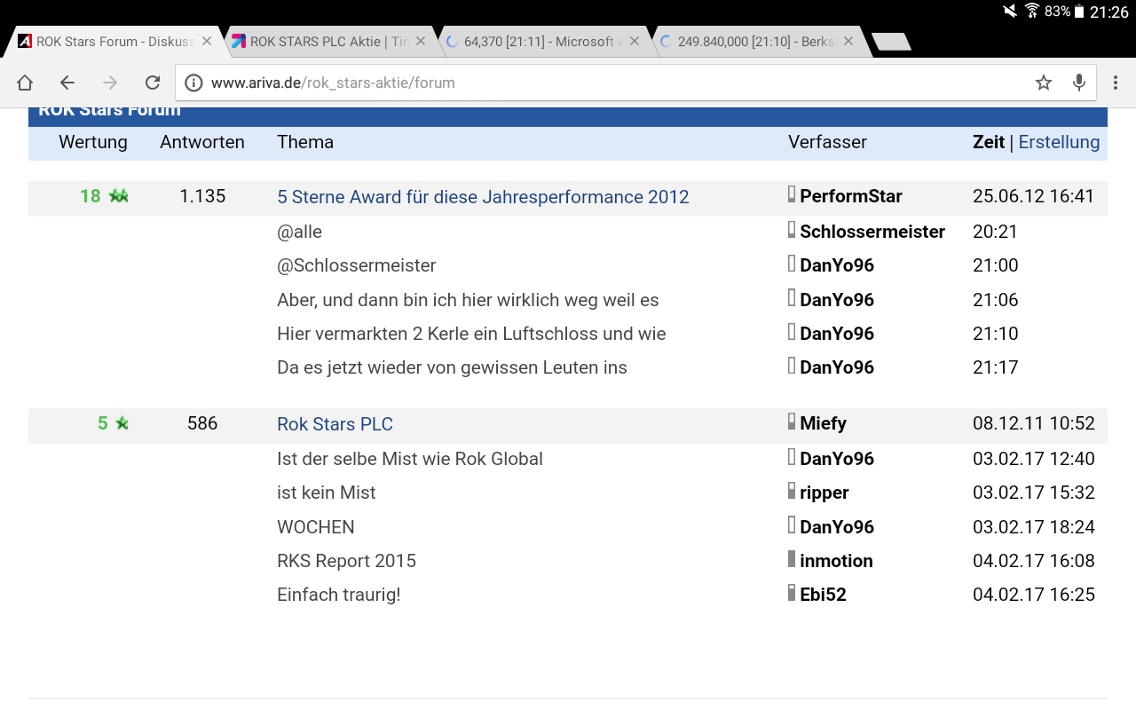 Kann mir gut vorstellen, das du richtig angepisst bist. Aber das war ja deine Entscheidung zu dem Kurs an einem bestimmten Datum zu kaufen. Aber deswegen sollte man nicht gleich alles in Frage stellen oder ins lächerliche ziehen. Ich versuche jedenfalls realistisch zu bleiben. Ich habe mir auch lange Gedanken gemacht vor dem Kauf der Aktie. Am liebsten hätte ich sie auch mit 5 Cent oder so gekauft. Aber für mich persönlich sieht und sah der Trend eher nach 20 Cent plus X aus, als 24Cent- X. Aber so ist das halt. Mal verliert man, mal gewinnt man. Ich persönlich sehe die Aktie aber irgendwann dieses Jahr bei 80 Cent. Ist meine Meinung. Andere sehen ein delisting, ich nicht. Wie gesagt ich habe Geduld und warte einfach mal ab. Jetzt kommt bestimmt wieder von dir abwarten und Pleite gehen.... finde ich persönlich langweilig weil solch eine Aussage einfach nur rudimänter ist. Ich erhalte pünktlichst meinen Lohn, es wird bei ABK von ROK investiert. Delisting sieht für mich anders aus.