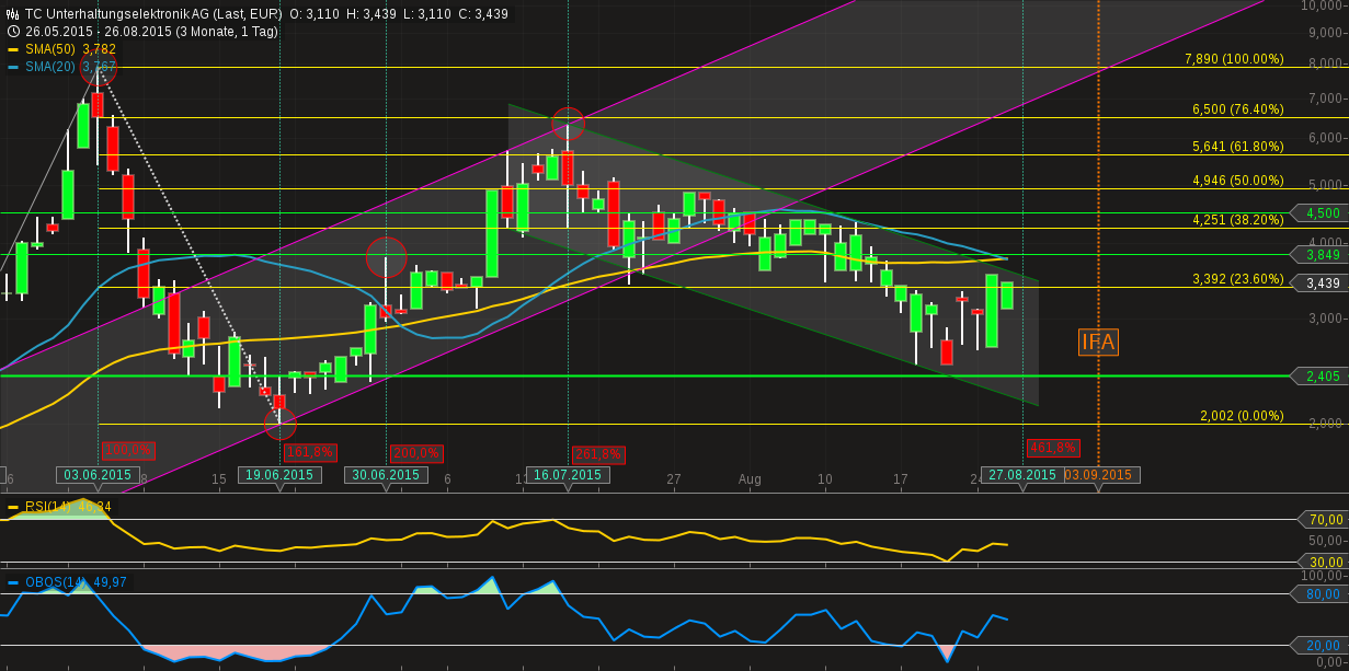 Zum Chart sagte ich schon, dass der Abwärtstrend korrekt ist. Ist aber nicht der übergeordnete. Und weil der TCU auch mit zehn gehandelten Aktien 15 Prozent bewegt werden kann, ist Charttechnik hier im Detail Makulatur.