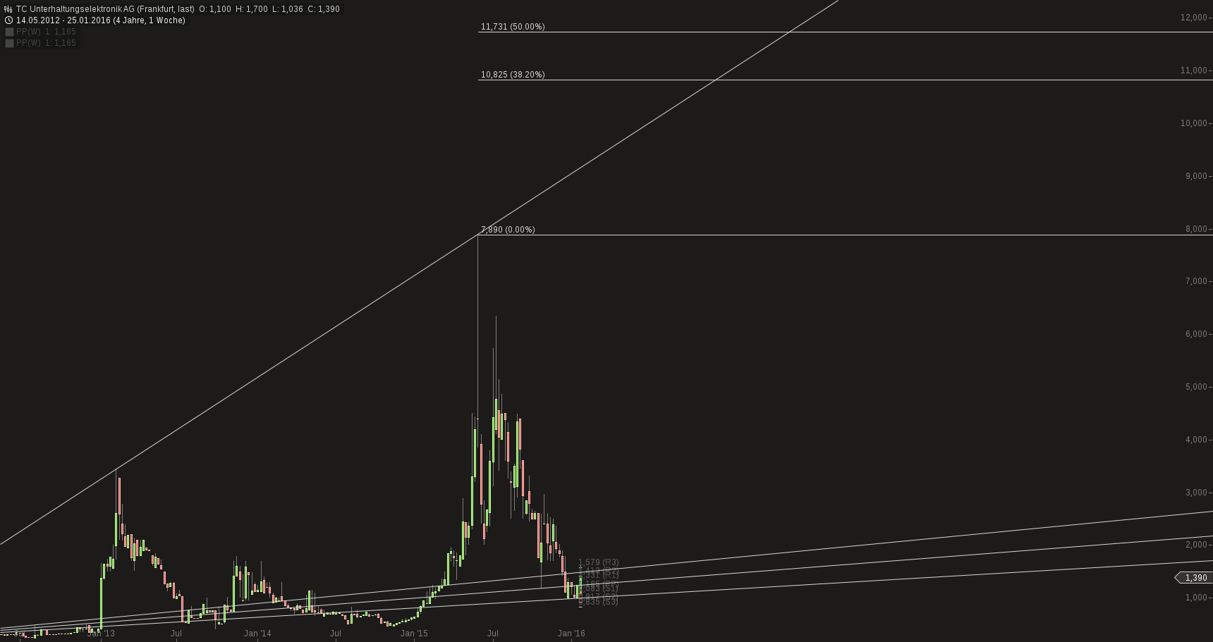 Quasi inexistentes Handelsvolumen (am Freitag ist nur eine einzige Position verschoben worden), technisch normale und erwartbare Gegenreaktion, die noch keinen Trend begründet, keine neuen Zahlen oder positive Nachrichten von TCU. Auf Amazon rekonstruierbare Verkäufe sind schlechter als lächerlich, mit insgesamt 12 (ja, richtig, da fehlen keine Nullen oder so: zwölf!) davon kann man wohl alle Hoffnung auf einen Erfolg fahren lassen.
